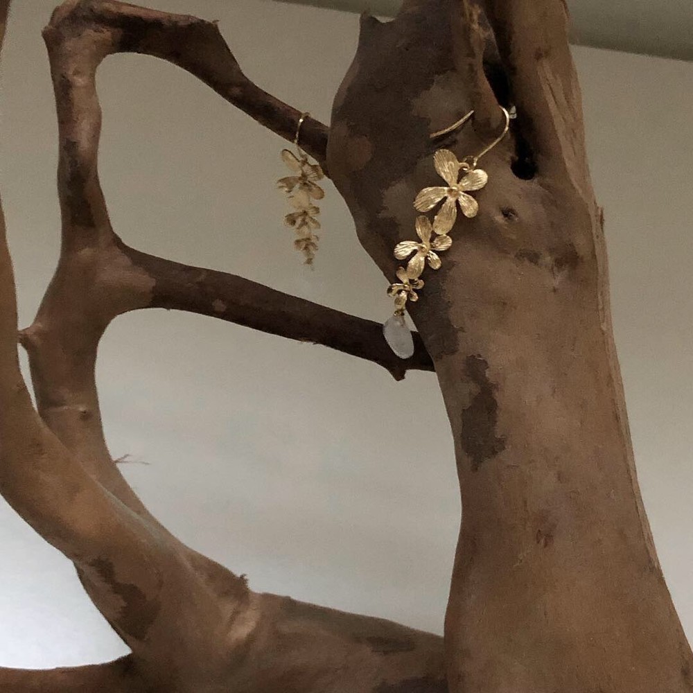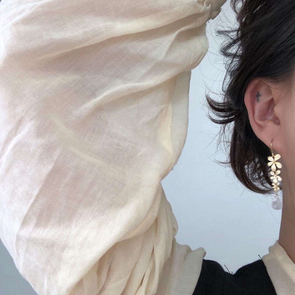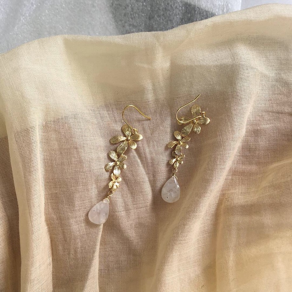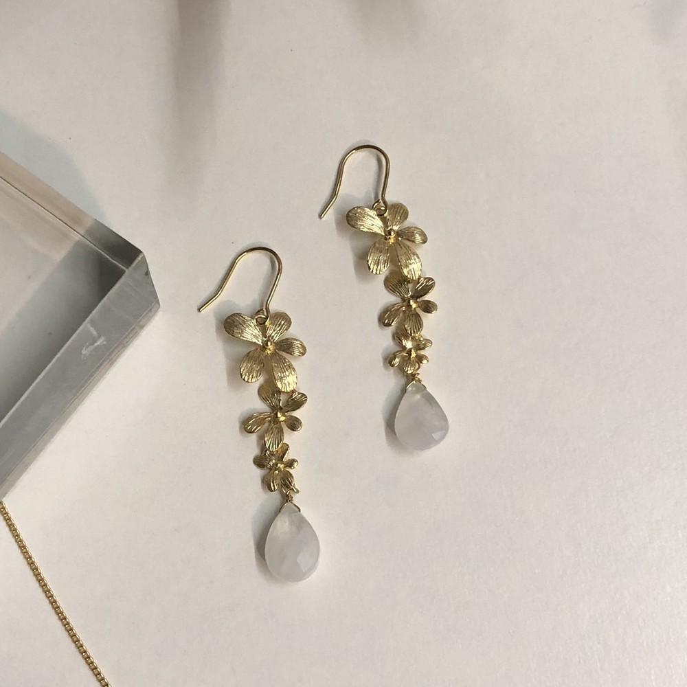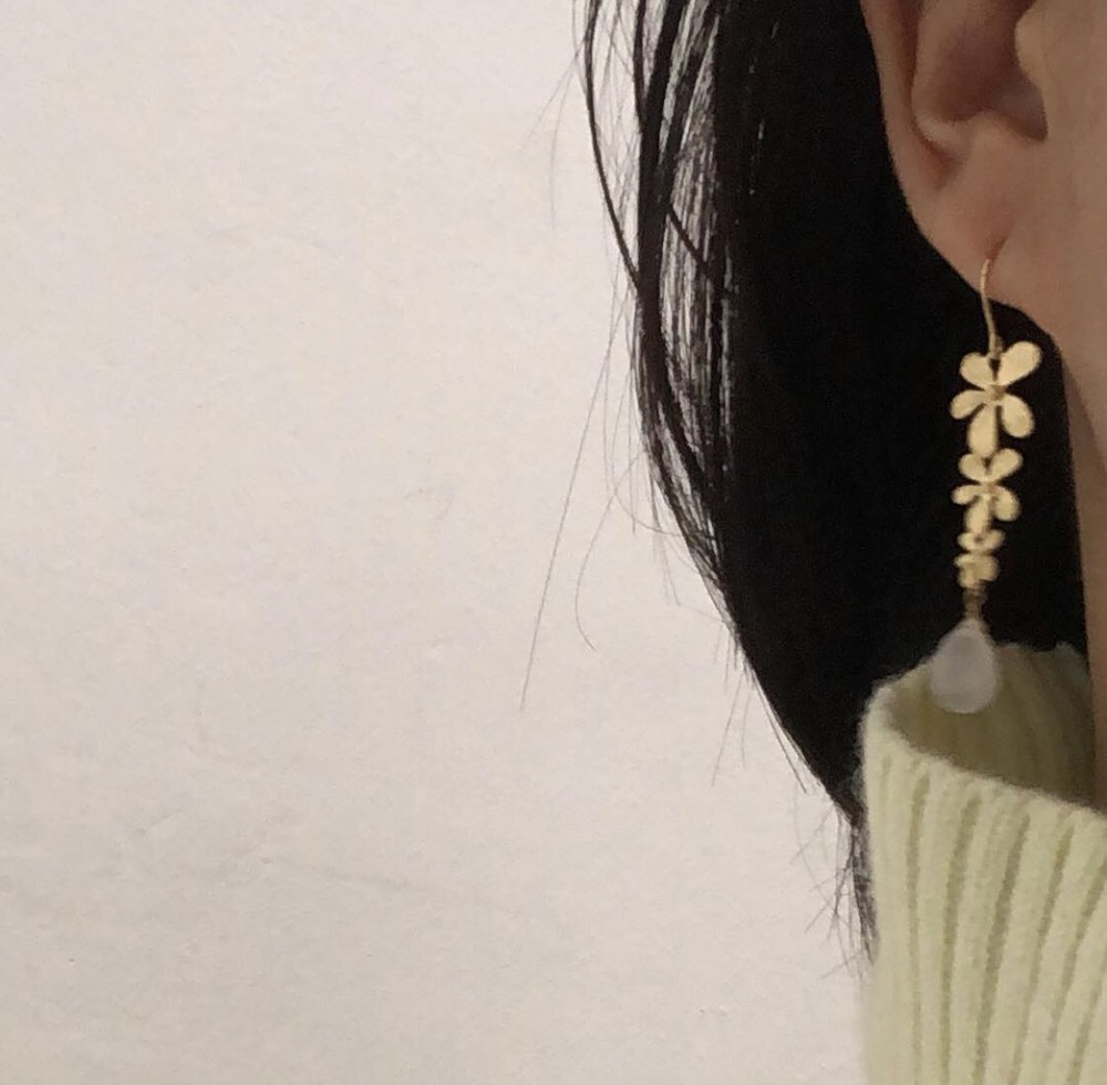 불투명한 수정을 연결하여 제작한 귀걸이입니다.