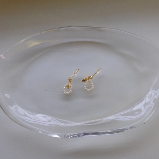 둥글게 꿴 작은 담수진주와 잎사귀를