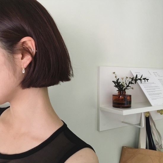 반짝이는 투명한 크리스탈이 박힌 침에 연결한 귀걸이입니다.
