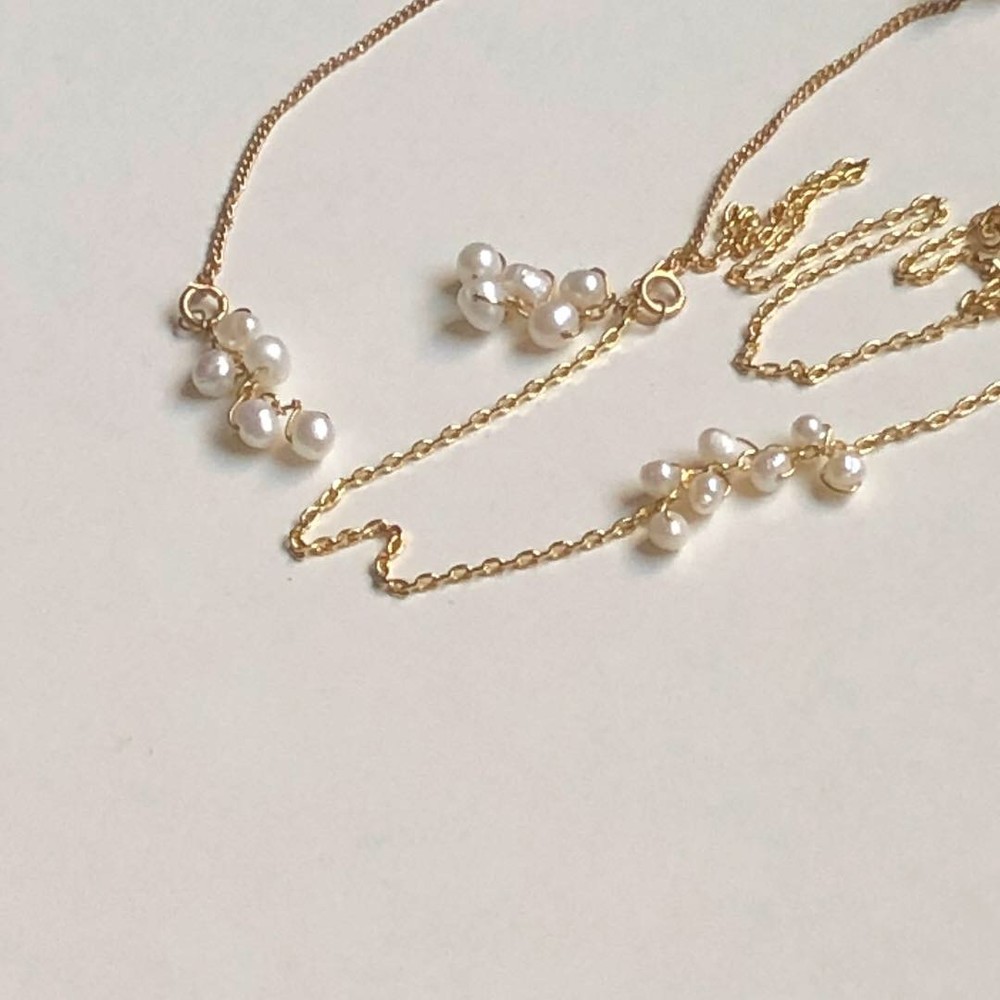 size- 진주(6-7알)_약 1.1cm, 체인_약41cm / 담수진주, brass
