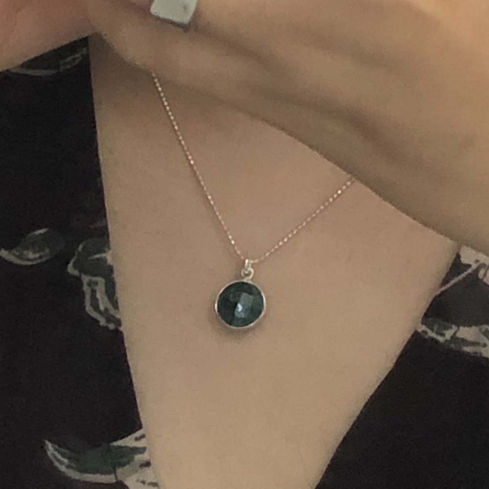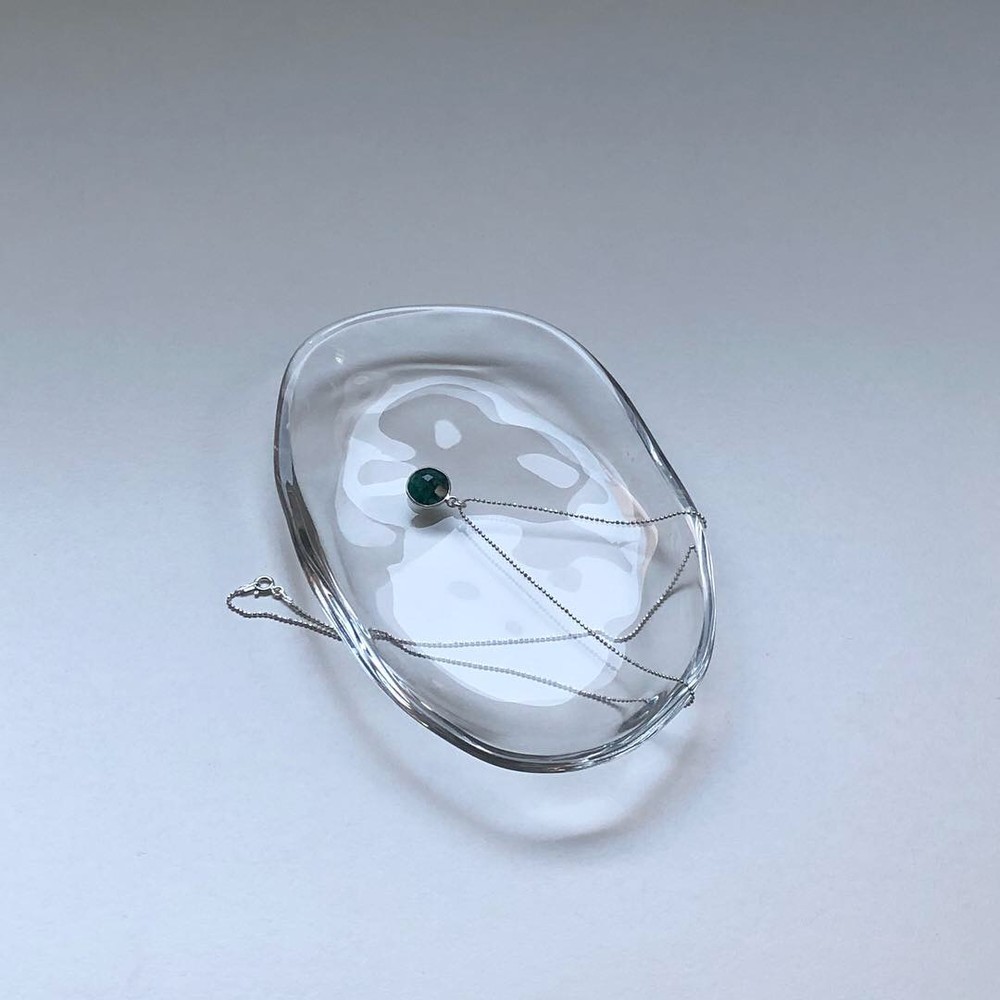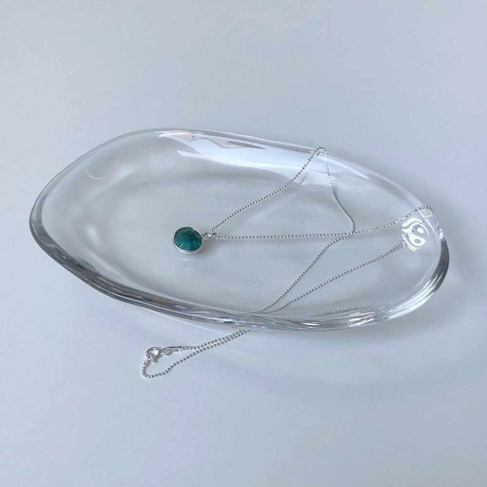초록빛의 에메랄드가 세팅된 목걸이입니다.