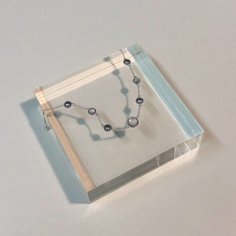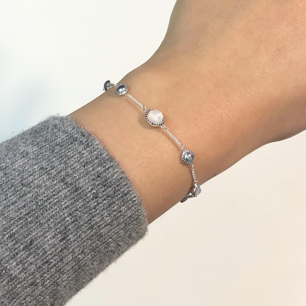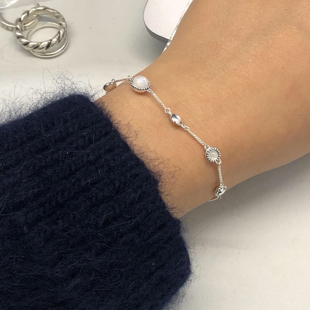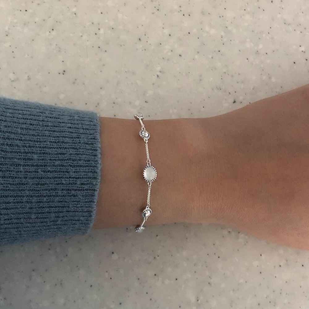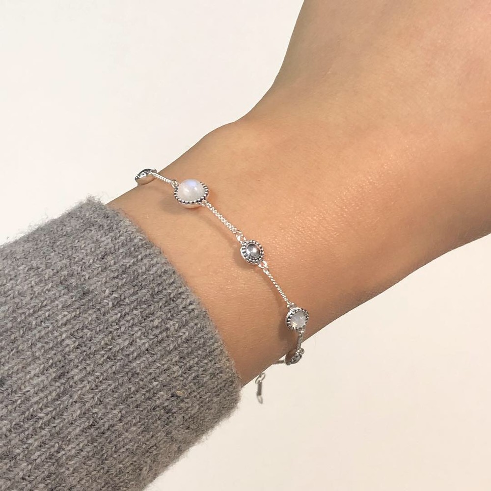 라운드 형태의 문스톤이 세팅된 팔찌입니다.
