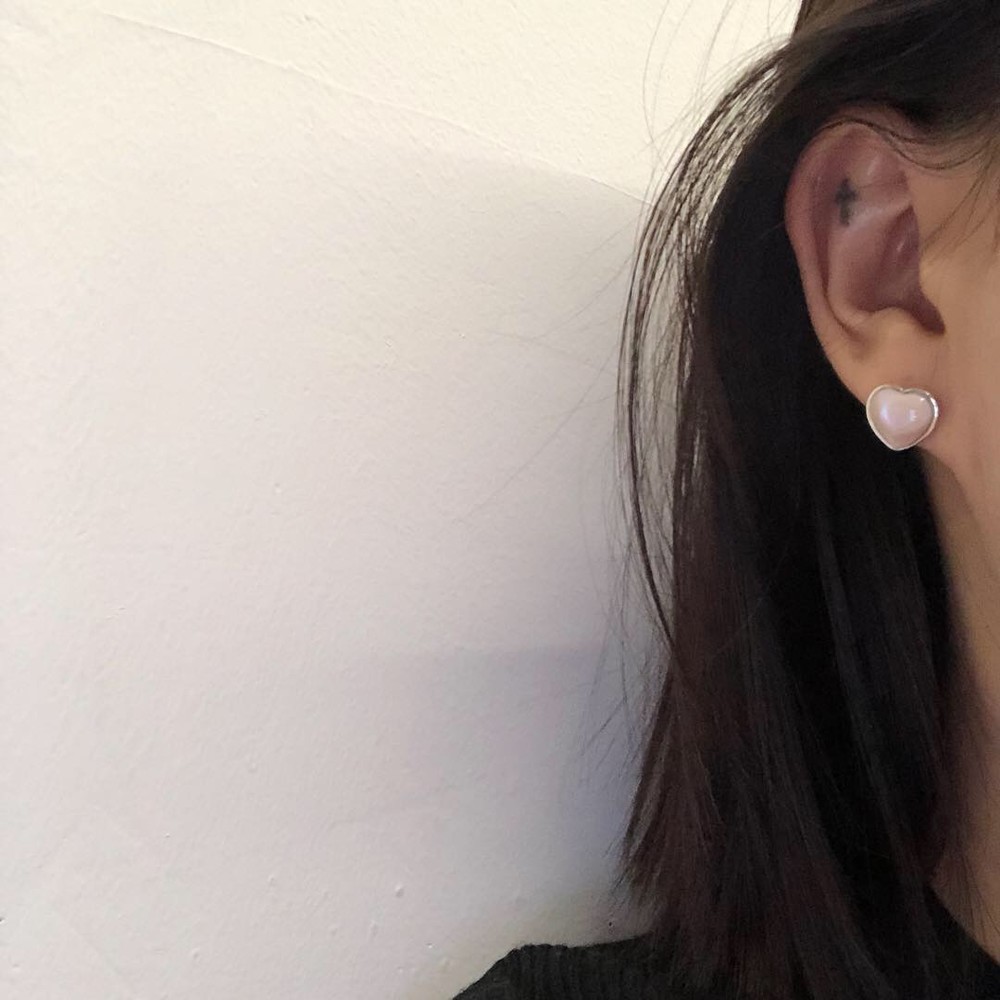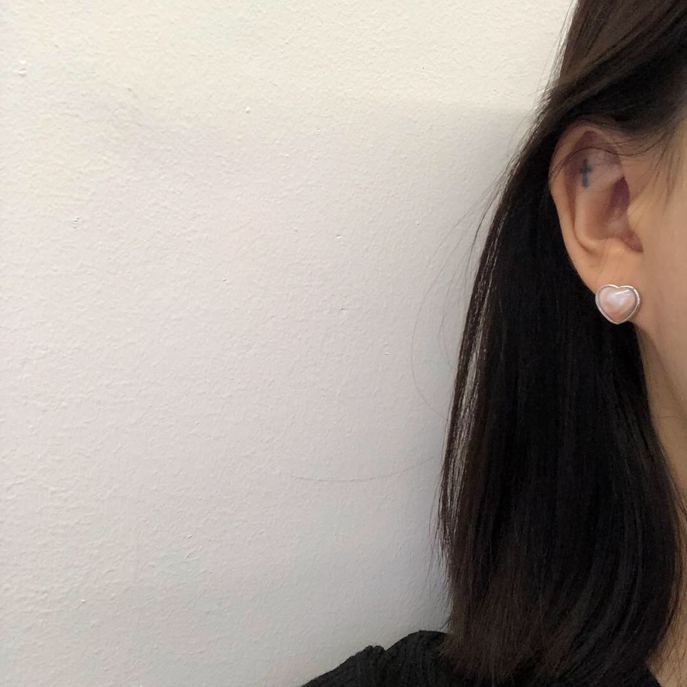 [단독]Pink mother of pearl heart earrings(925 silver)