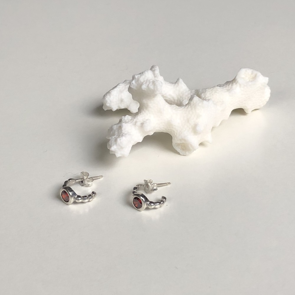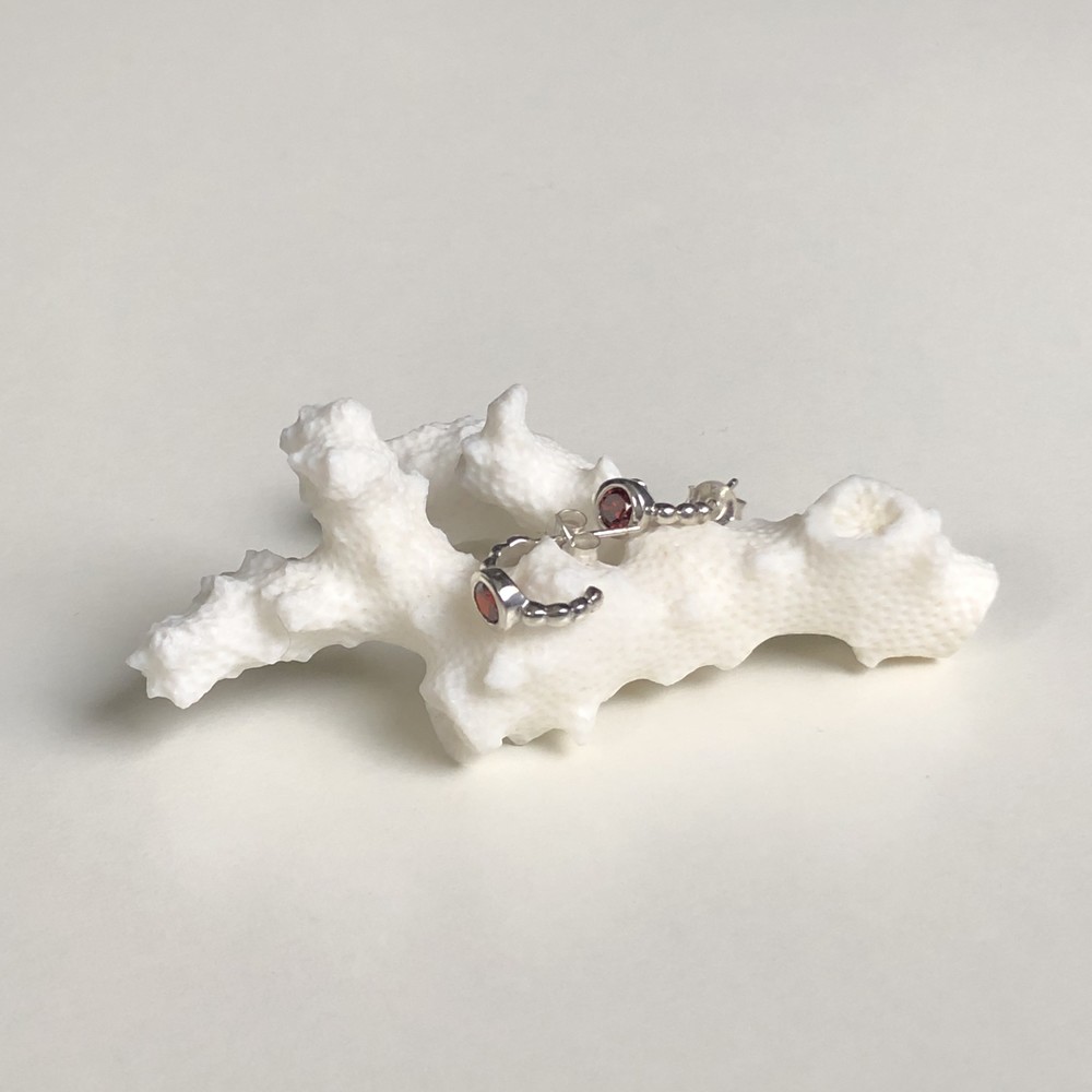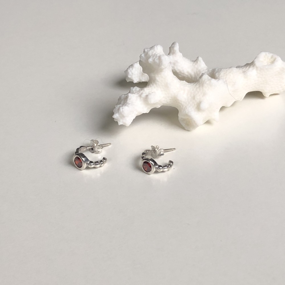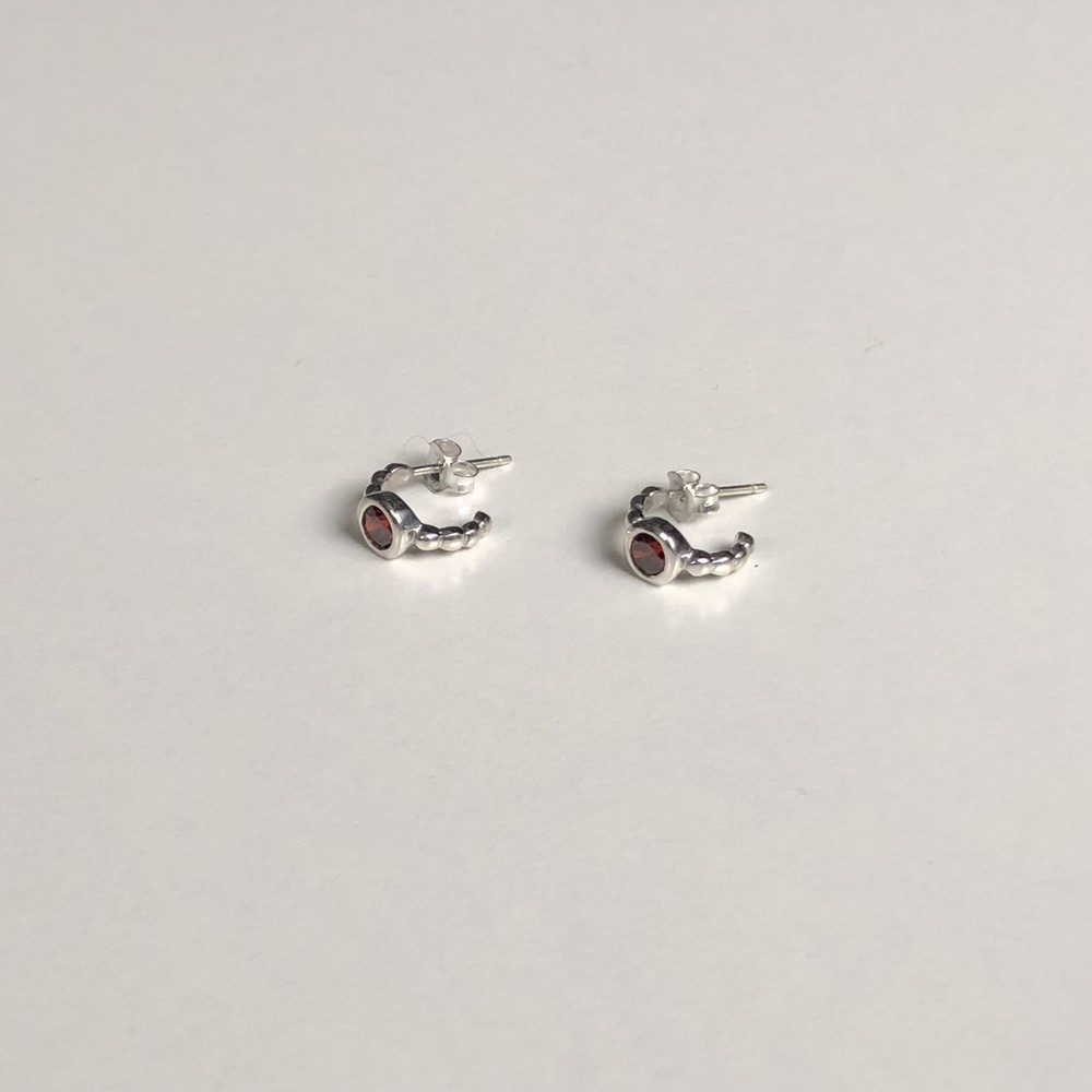Small garnet half ring earrings(925 silver)