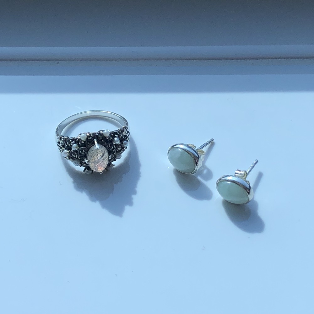 옅은 청녹색의 호주 비취를 세팅하여 제작한 귀걸이입니다.