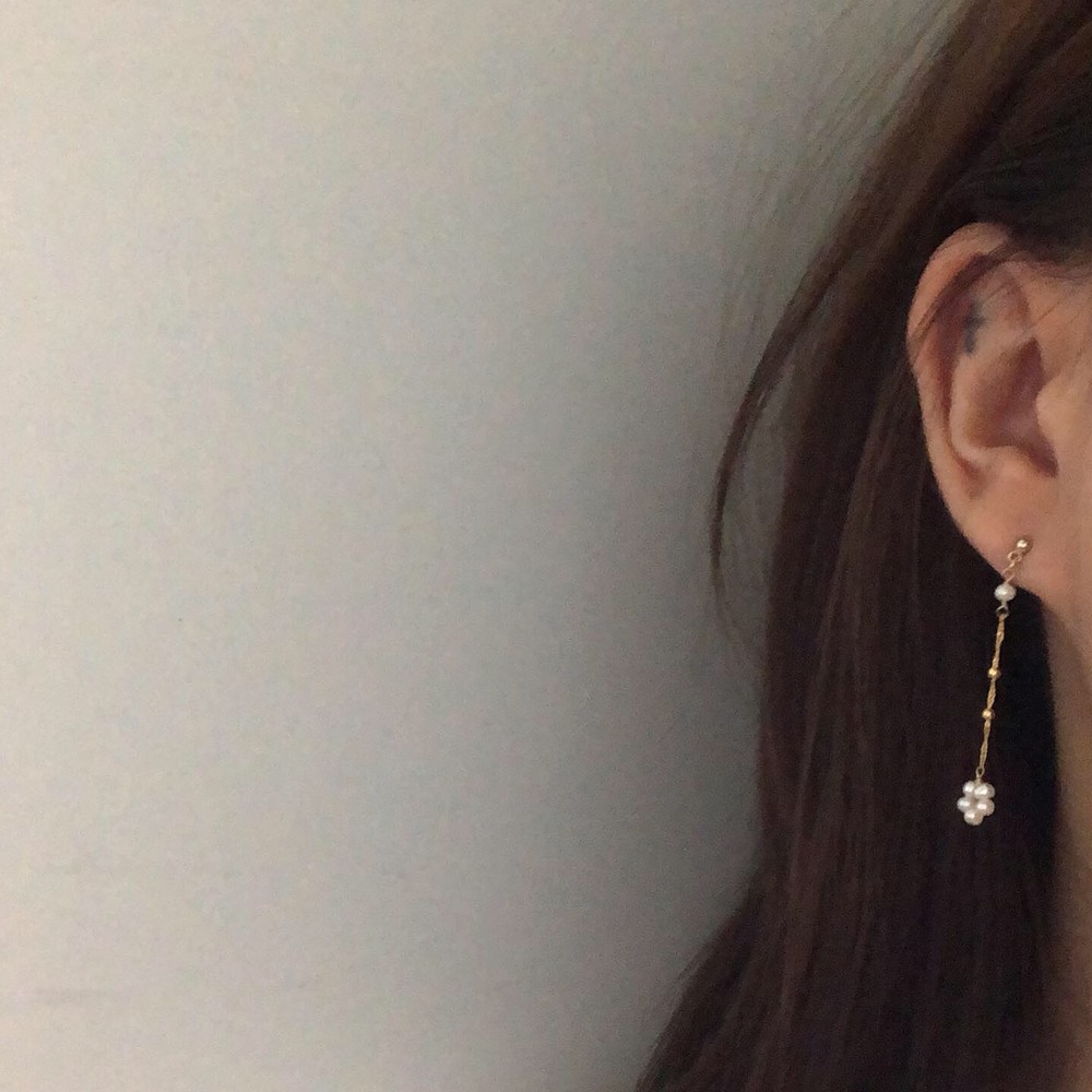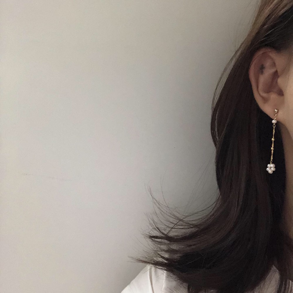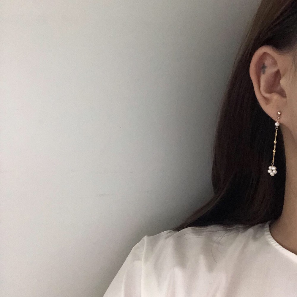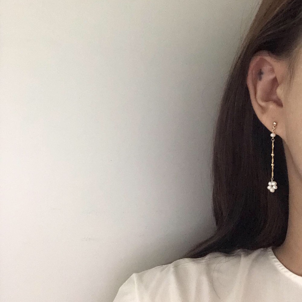 작은 꽃 모양의 담수진주가 포인트인 드롭 귀걸이입니다.