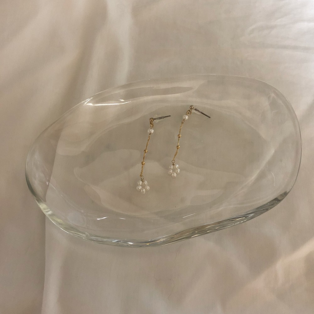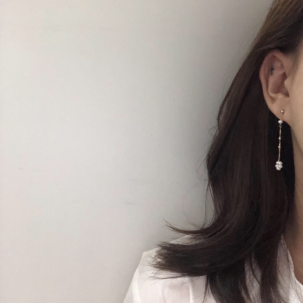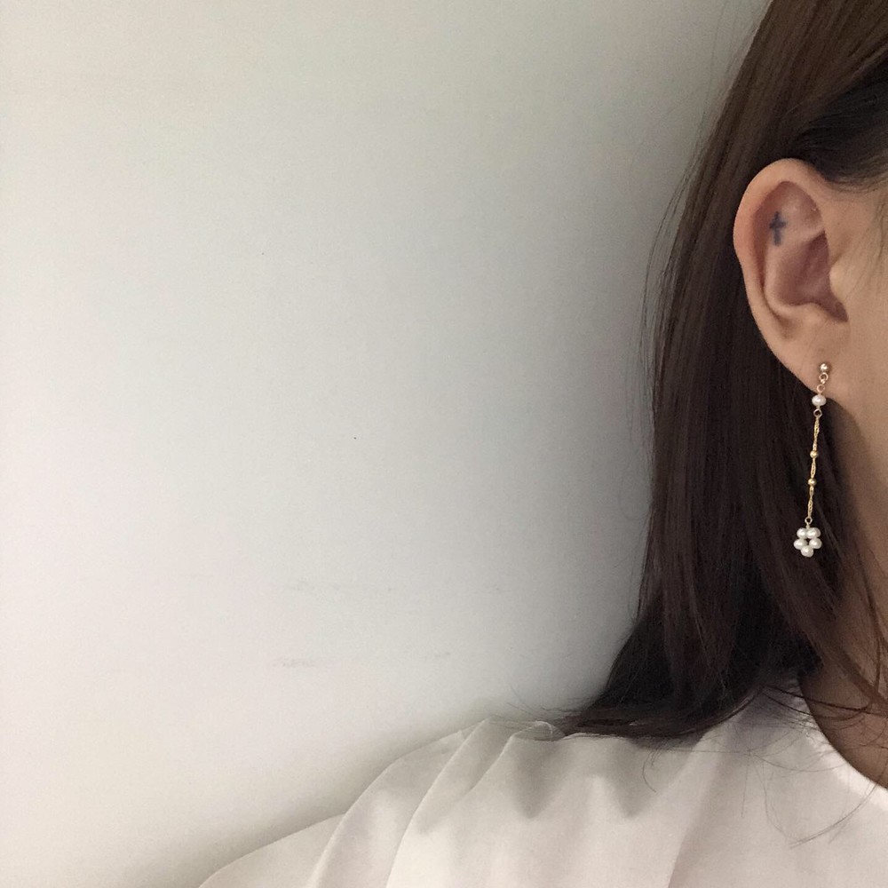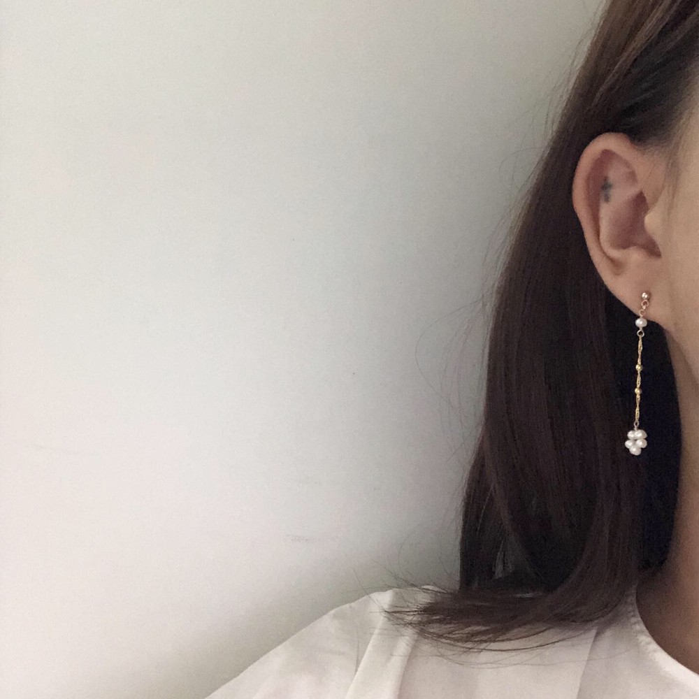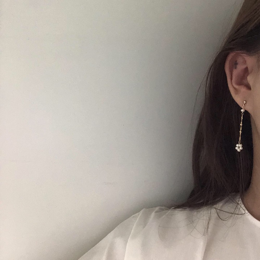 작은 꽃 모양의 담수진주가 포인트인 드롭 귀걸이입니다.