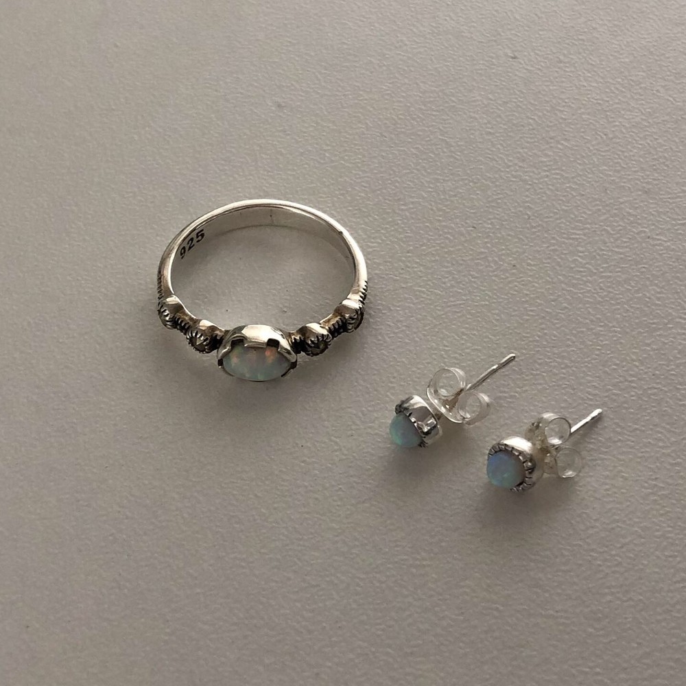 푸른빛의 오팔이 매력적이며, 사랑스럽습니다.
