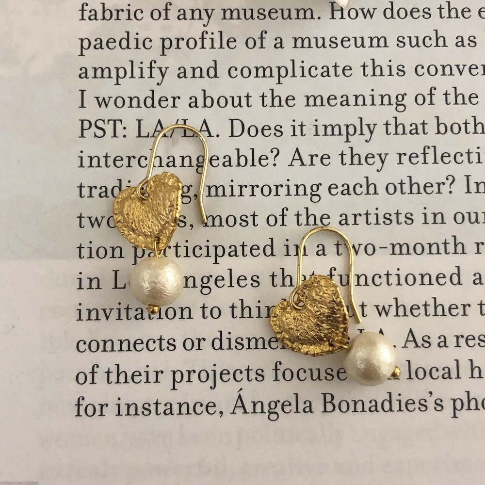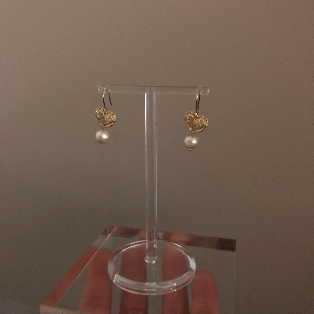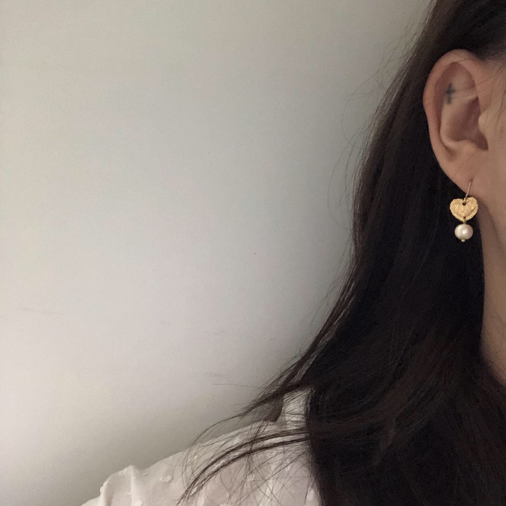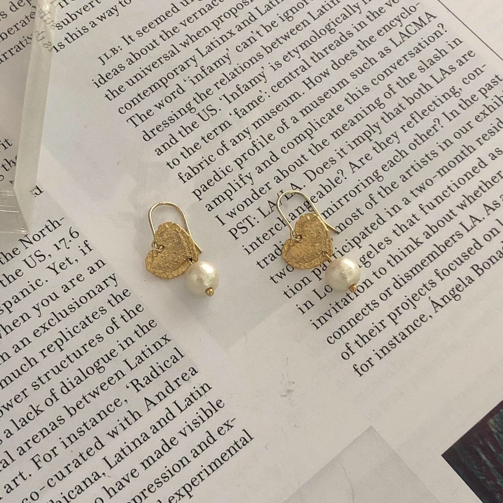 텍스처 있는 하트 유닛에 진주를 더해 제작한 사랑스러운 하트 귀걸이입니다.