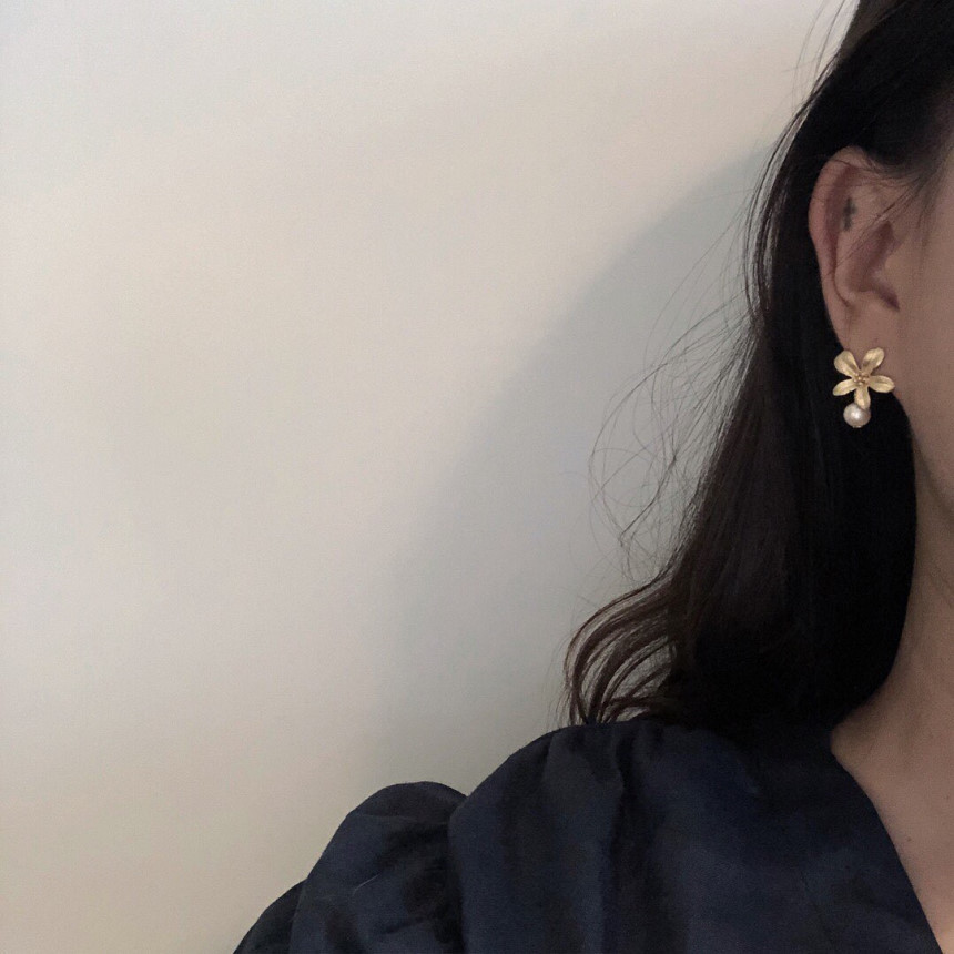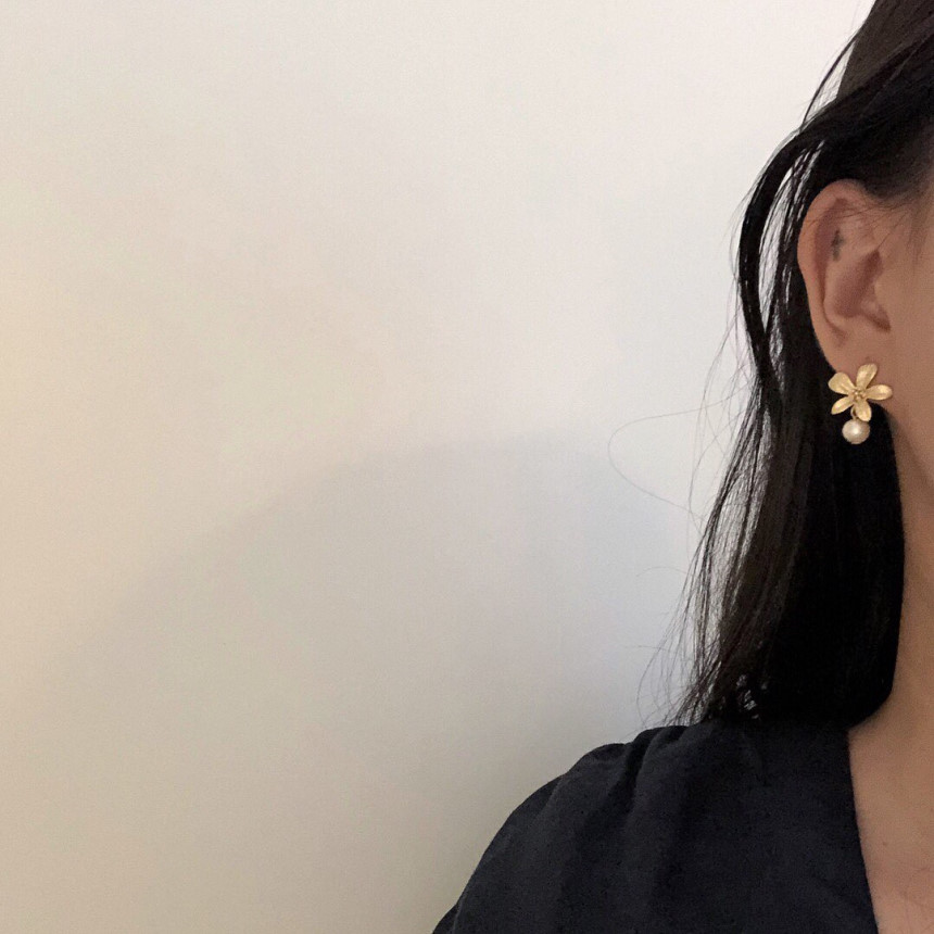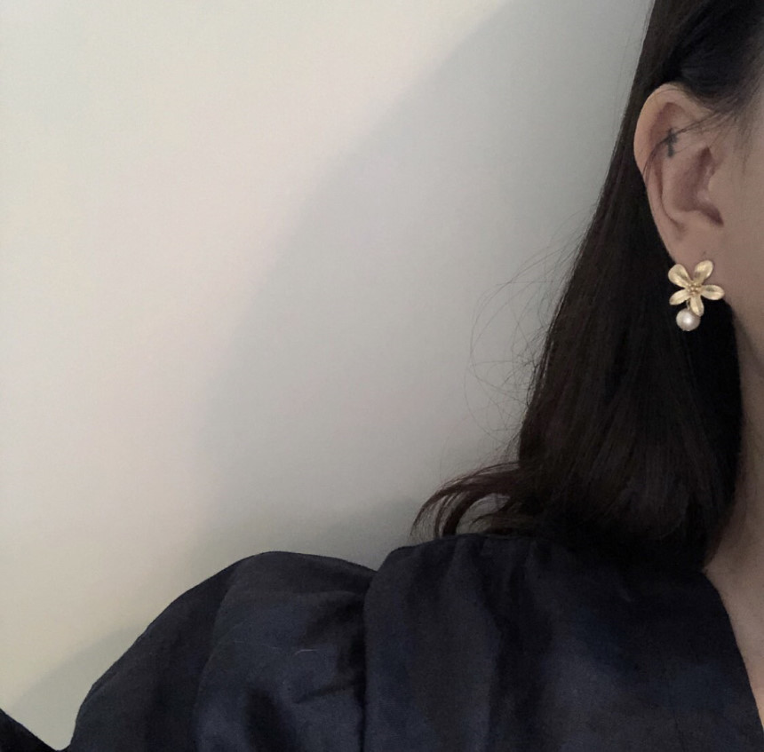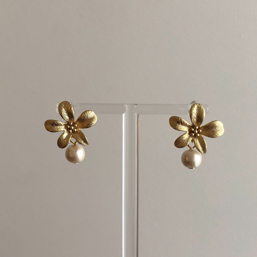 커다란 꽃 아래에 코튼 펄을 달아 만든 귀걸이입니다.