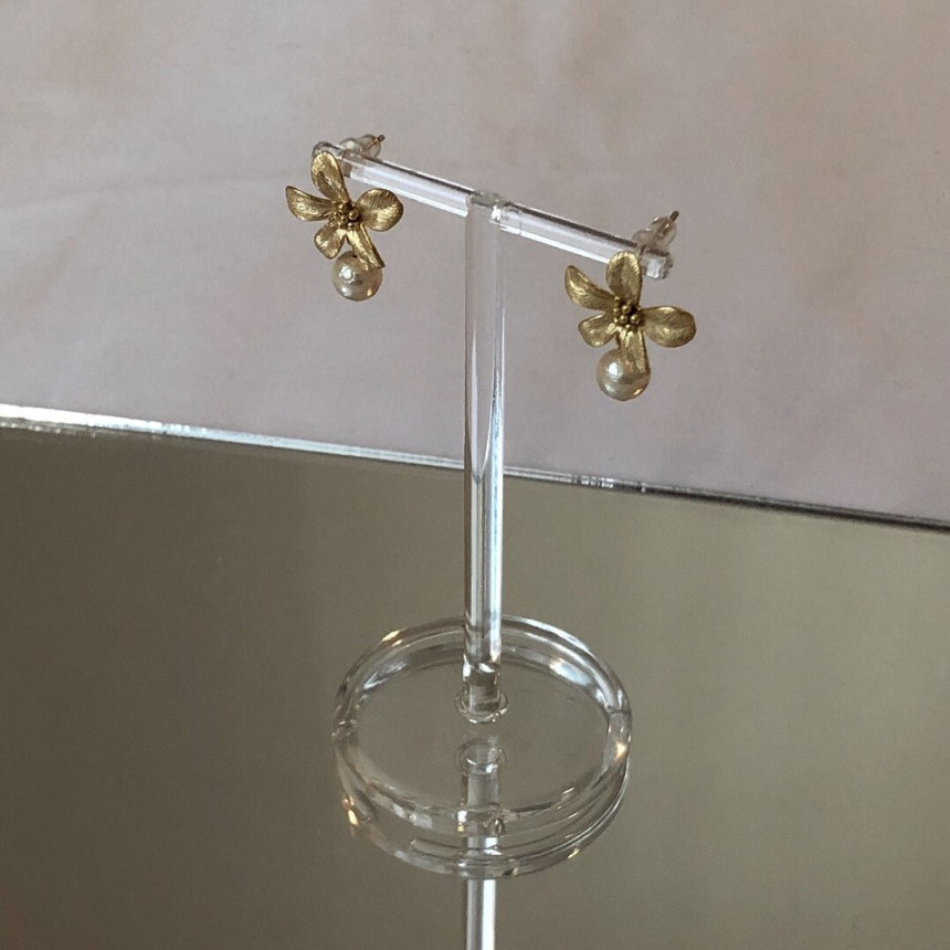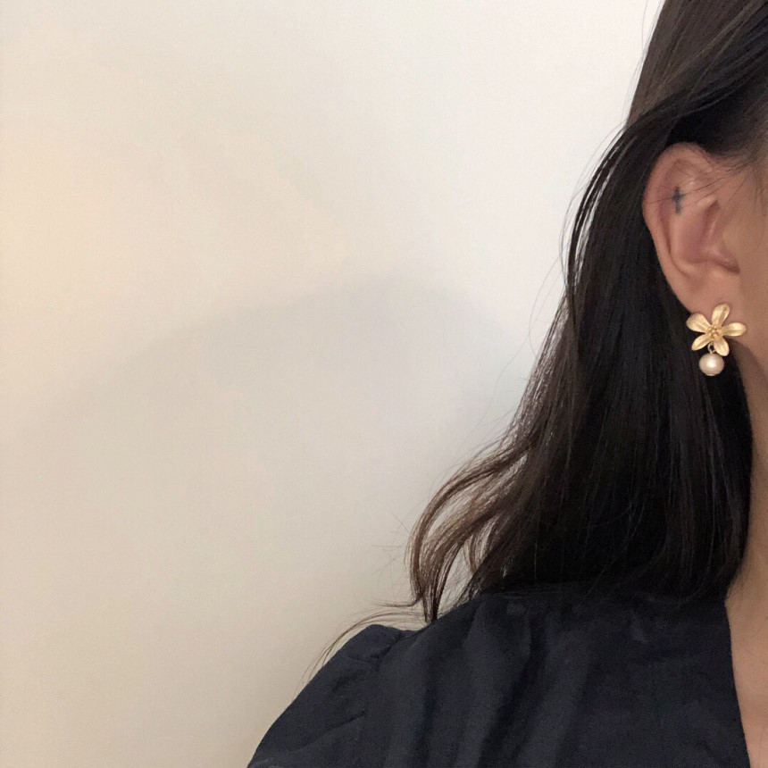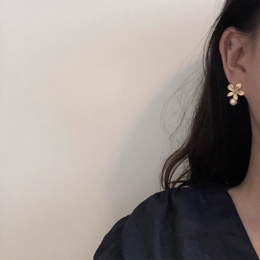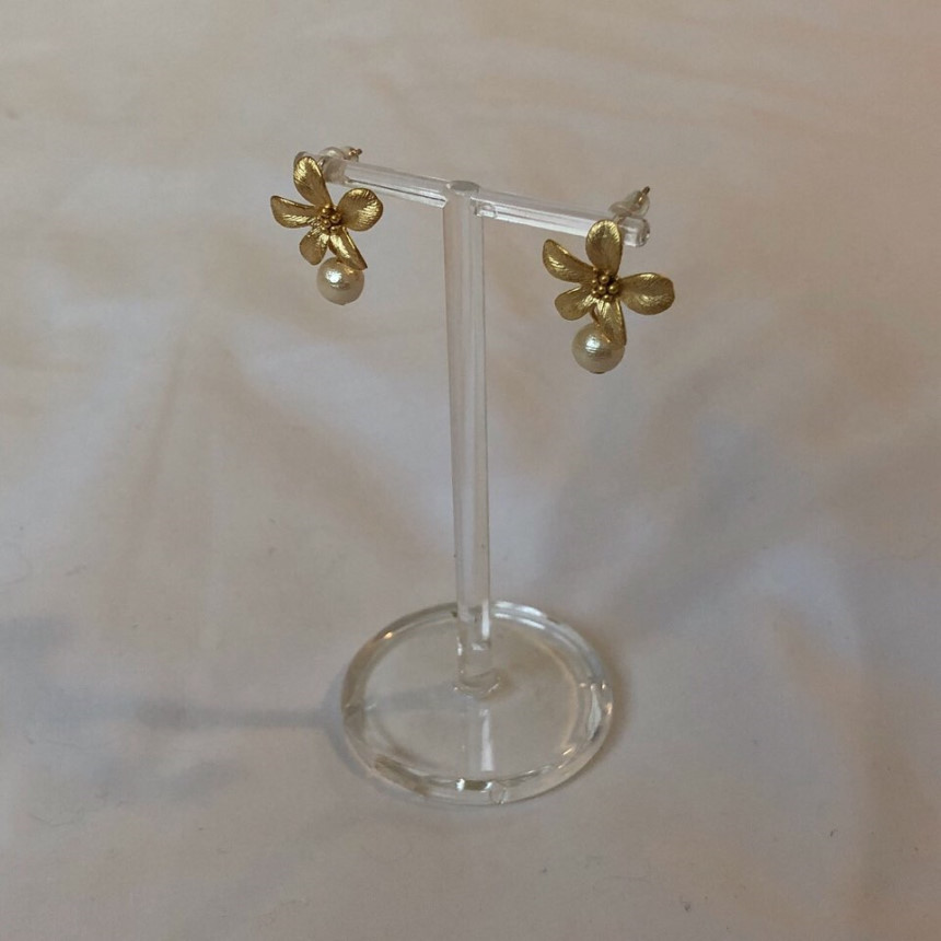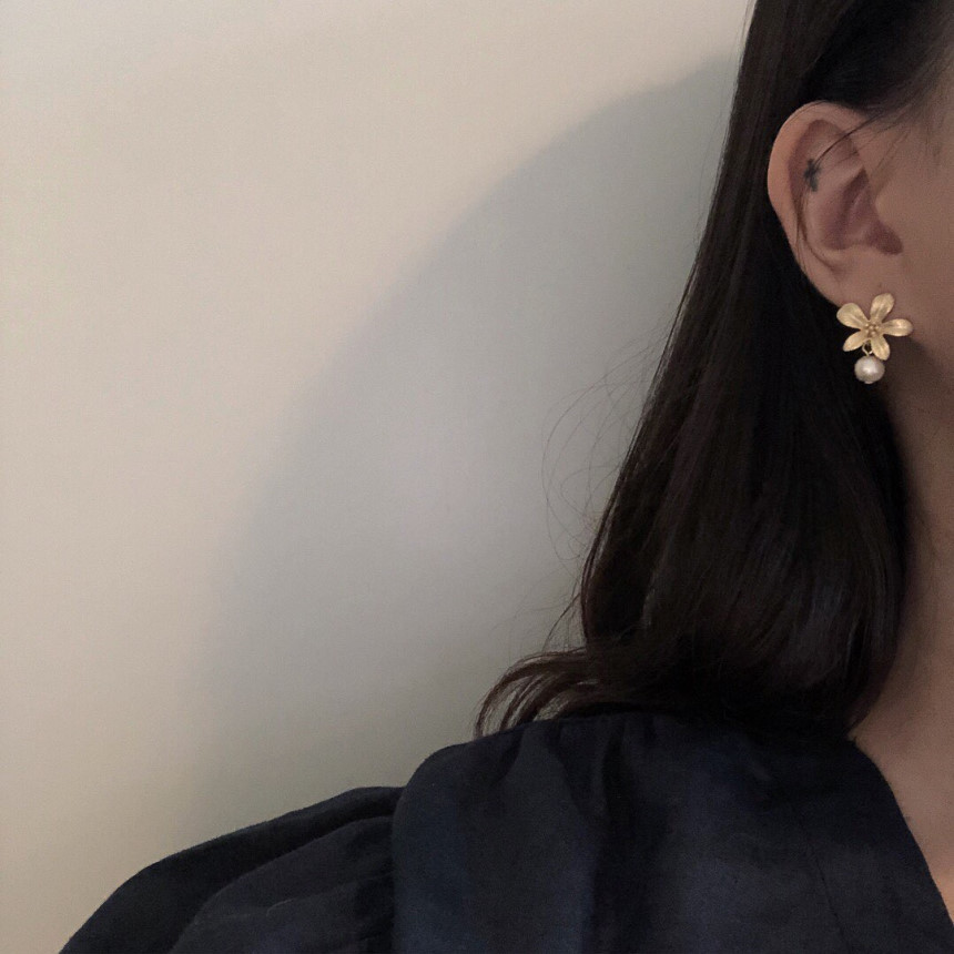 커다란 꽃 아래에 코튼 펄을 달아 만든 귀걸이입니다.
