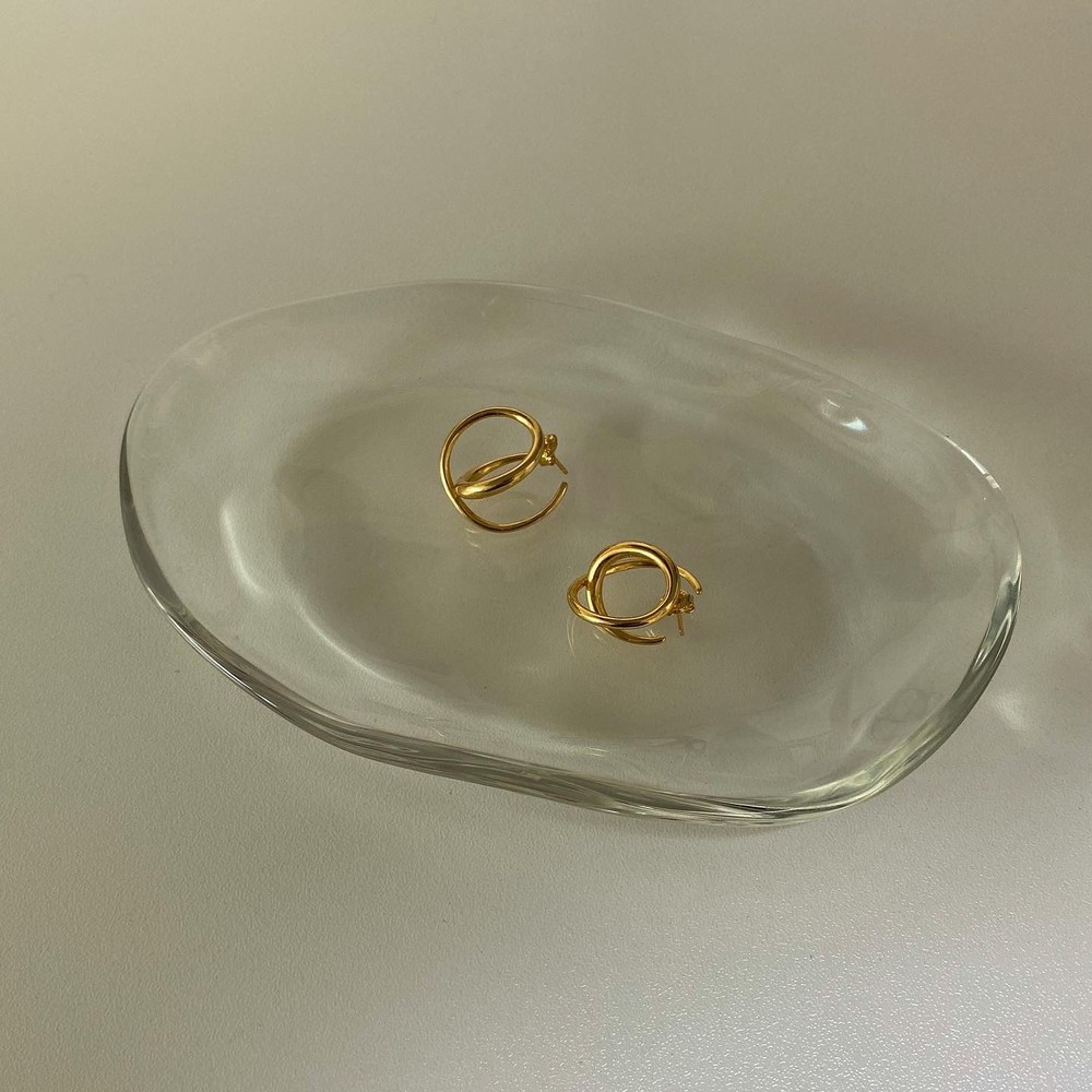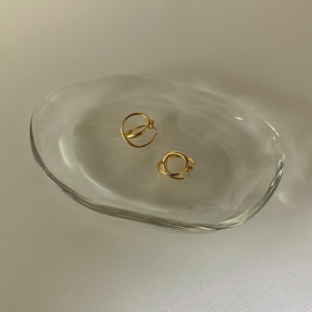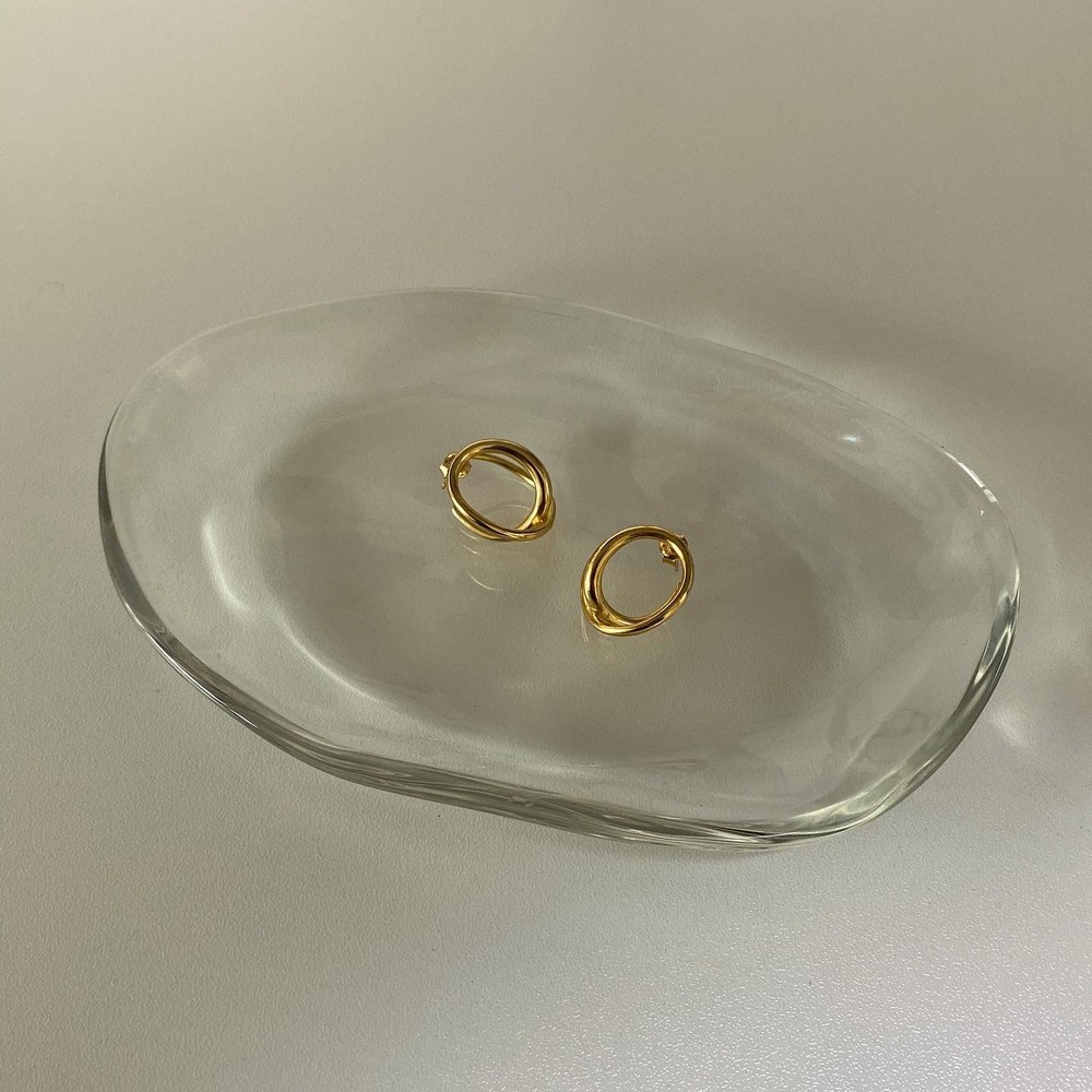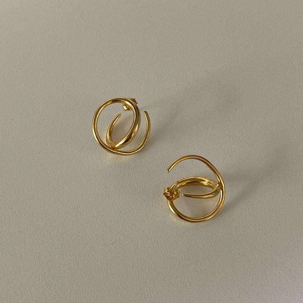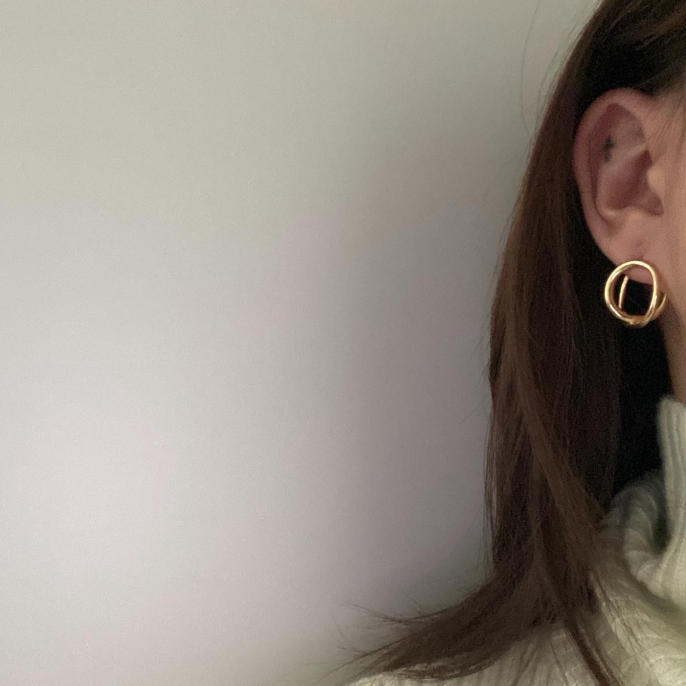 선재를 두개의 원처럼 교차하여 꼬은 우아한 골드 컬러의 귀걸이입니다.