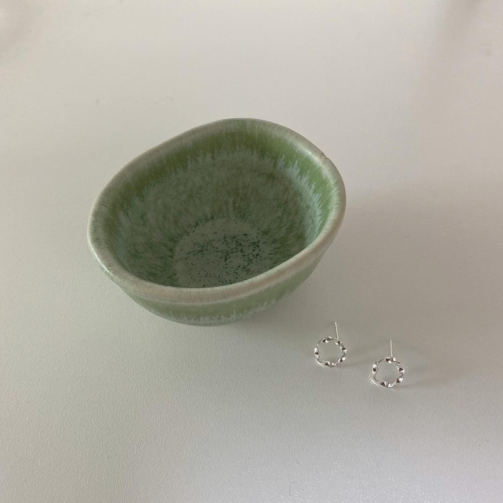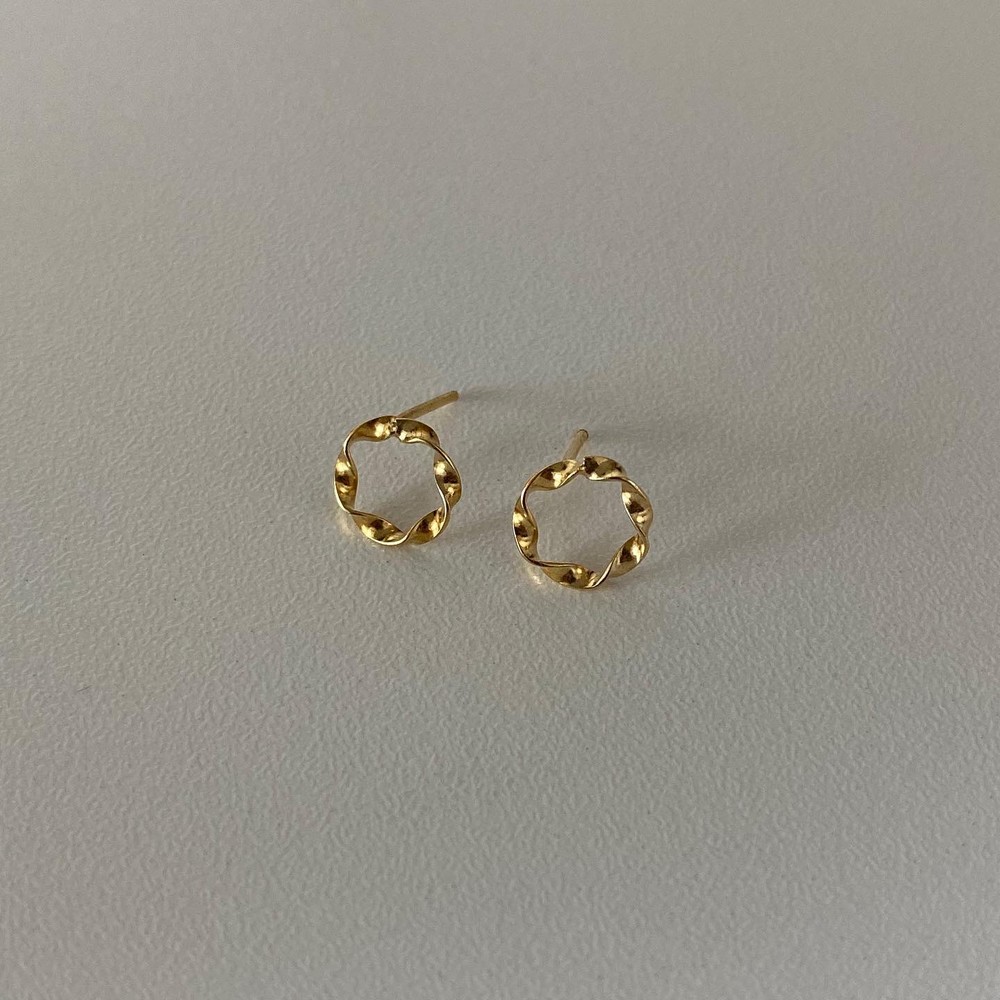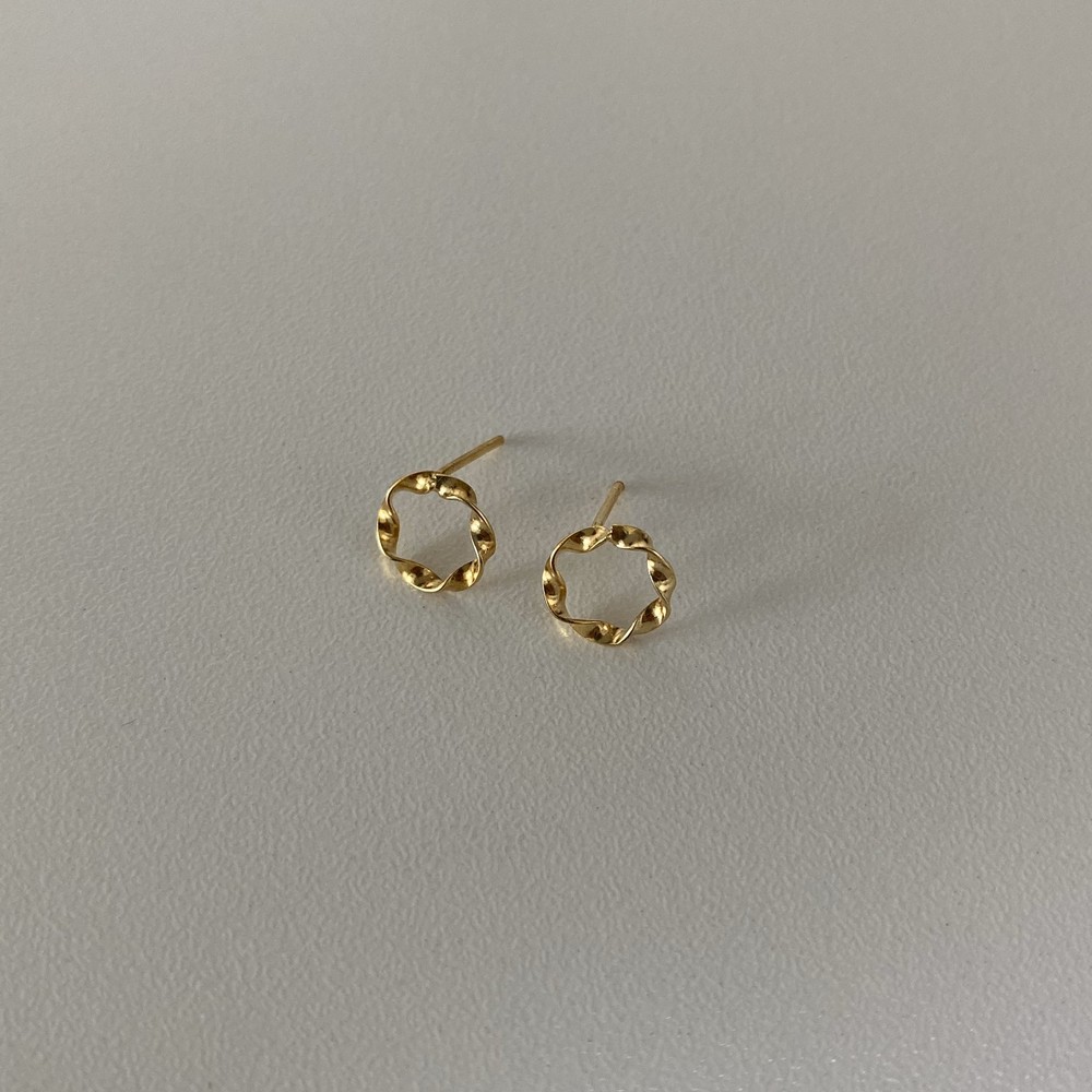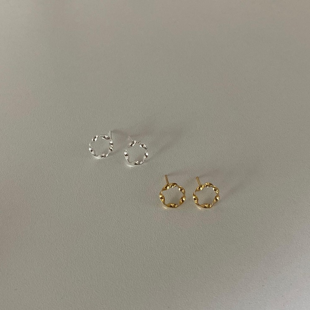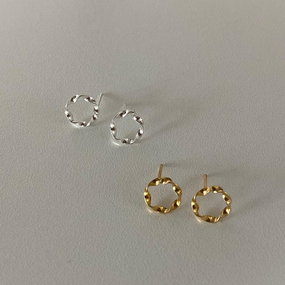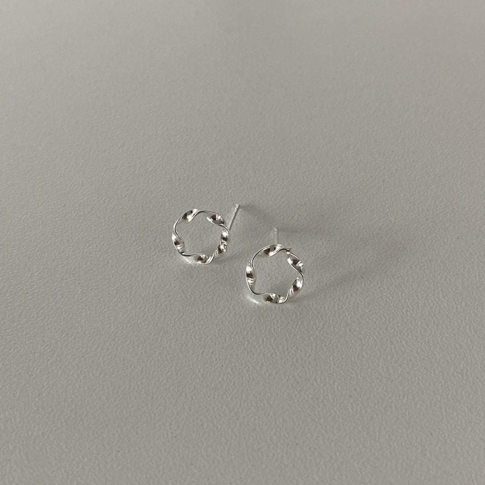 물결처럼 규칙적으로 꼬은 선재를 동그랗게 이어 제작한 미니 사이즈의 귀걸이입니다.