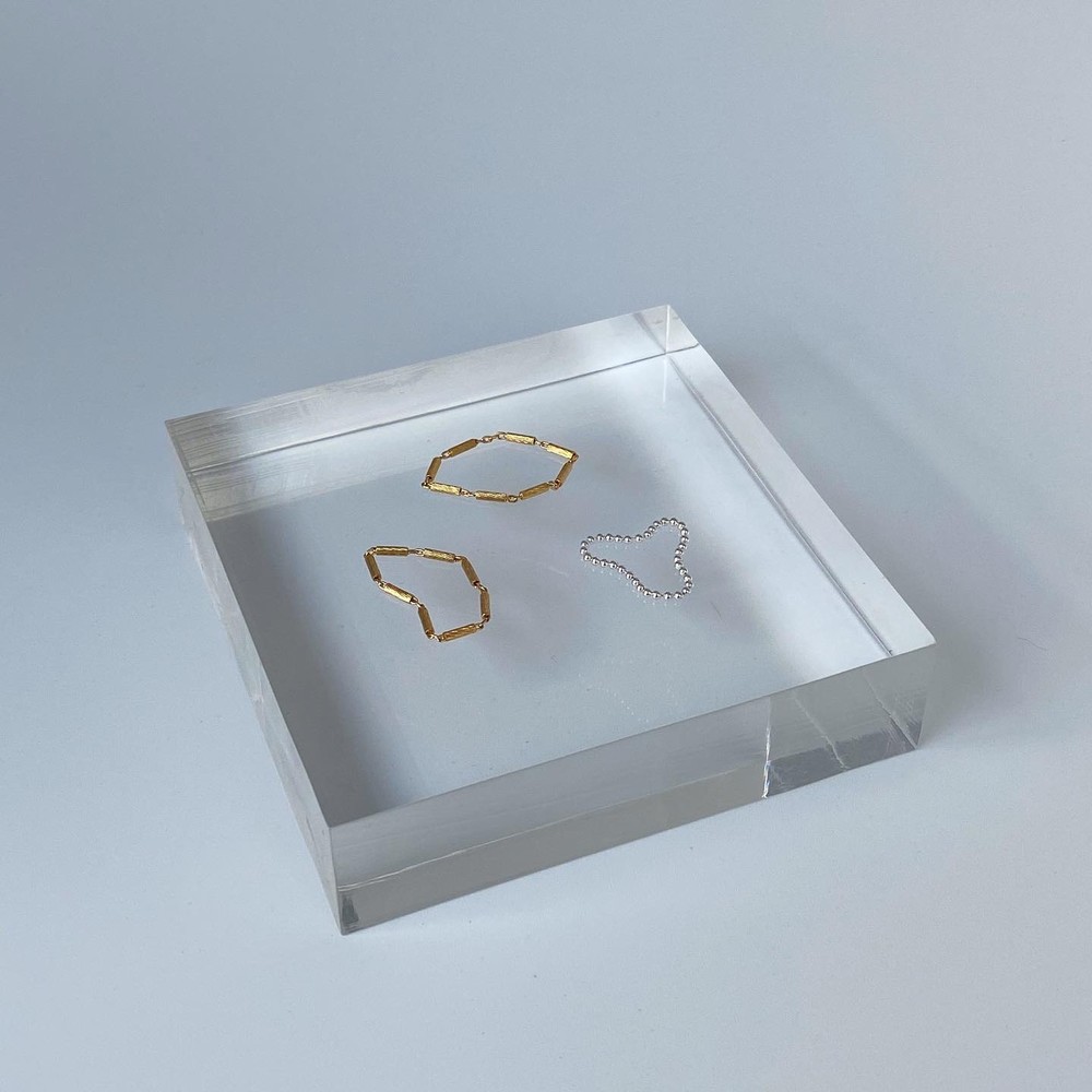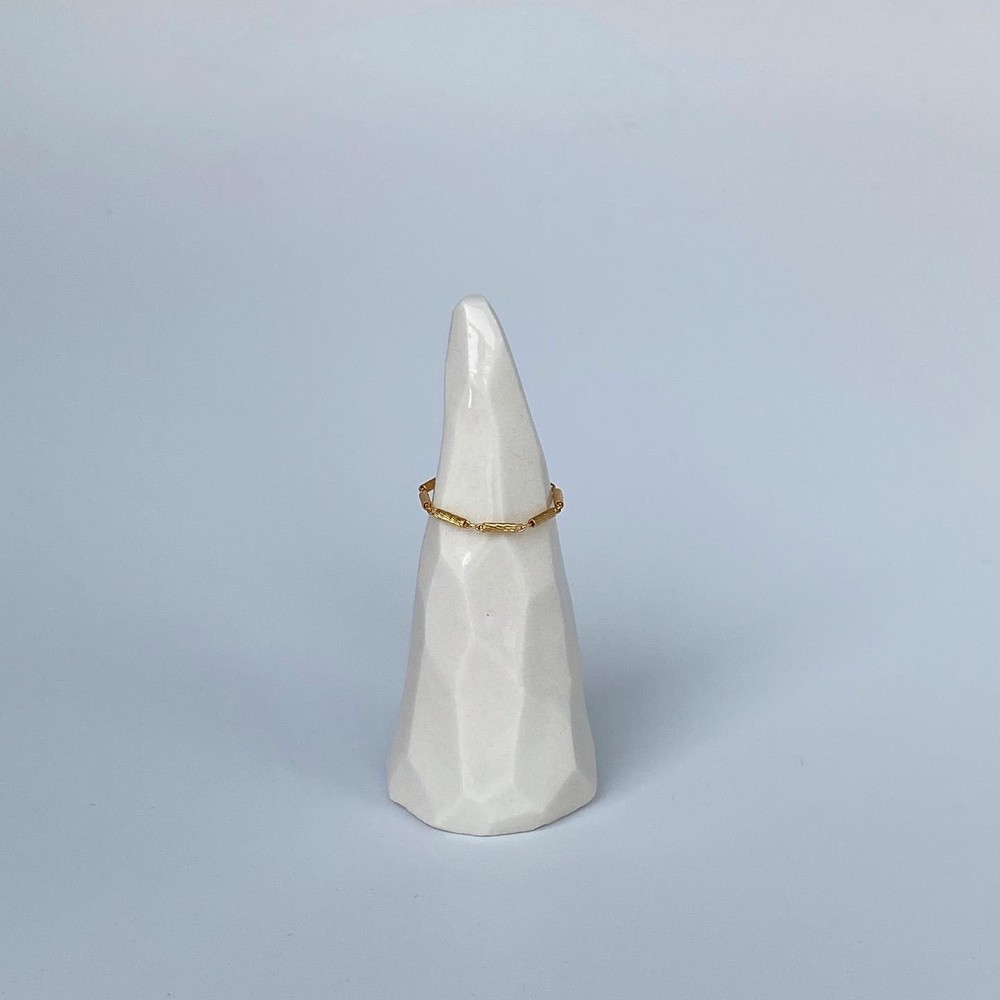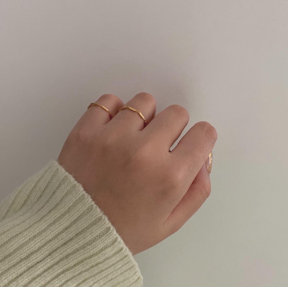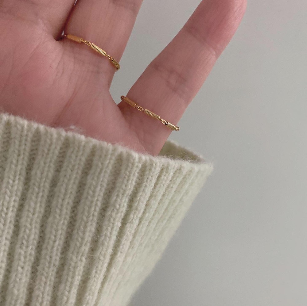 텍스처가 있는 일정한 크기의 스틱을 연결하여 제작한 체인 반지입니다.