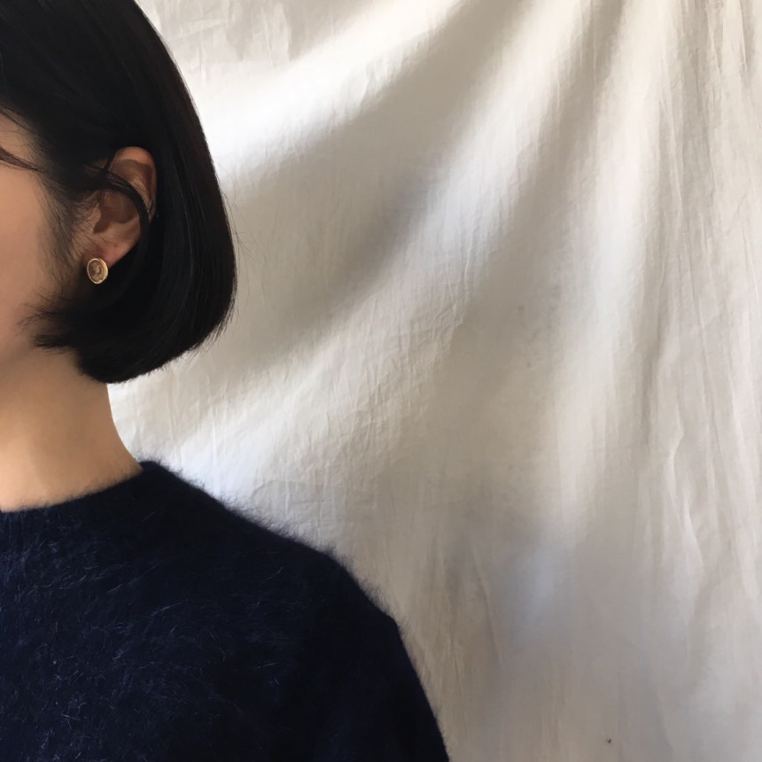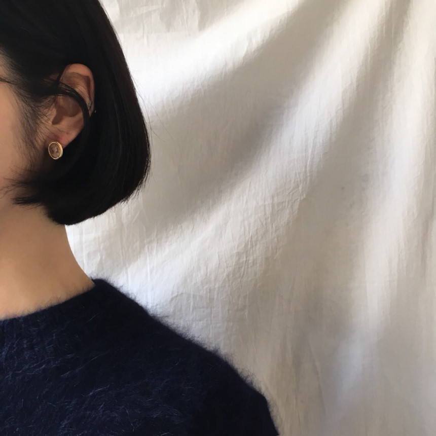 양각으로 조각한 원석 덕분에 빈티지한 분위기를 풍기는 귀걸이입니다.