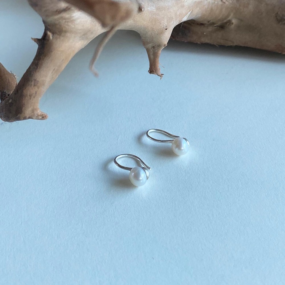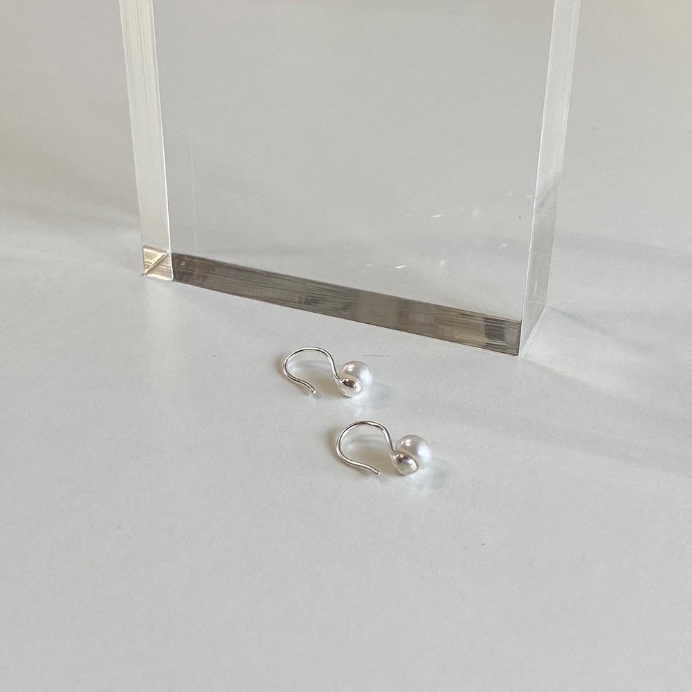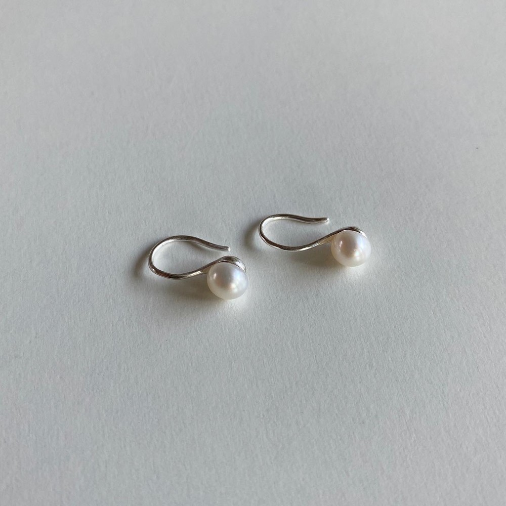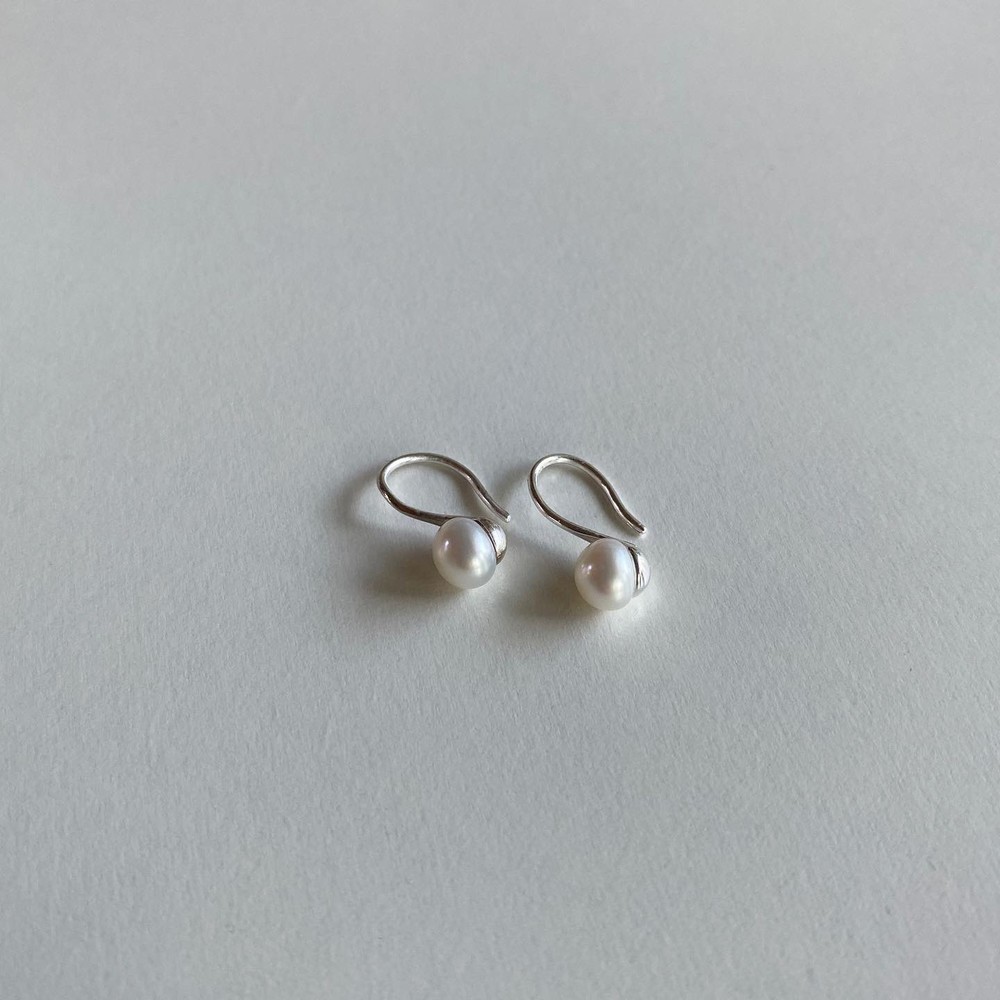 Pearl curve earrings(925silver)