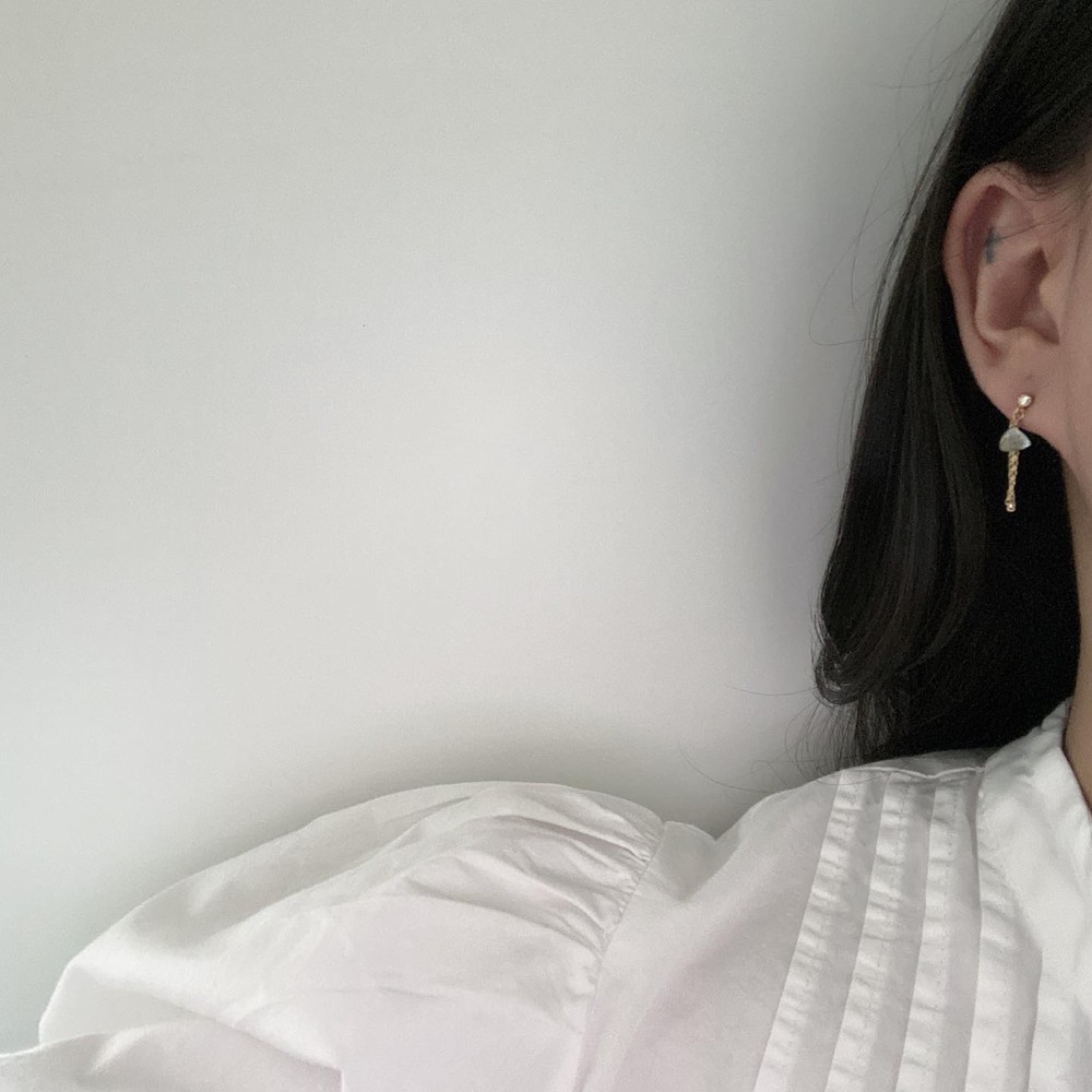 반짝이는 투명한 크리스탈이 박힌 침에 연결한 귀걸이입니다.