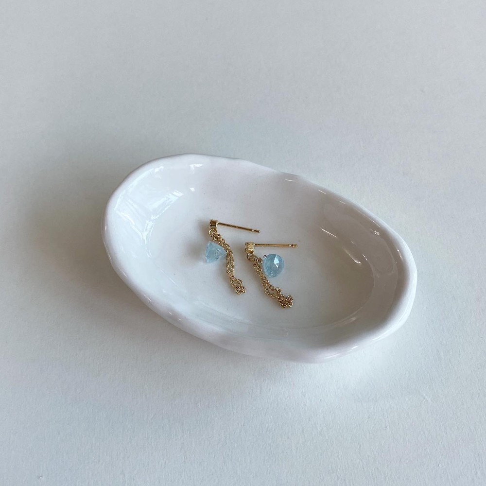 맑은 푸른빛의 아쿠아마린 원석과 골드 체인을
