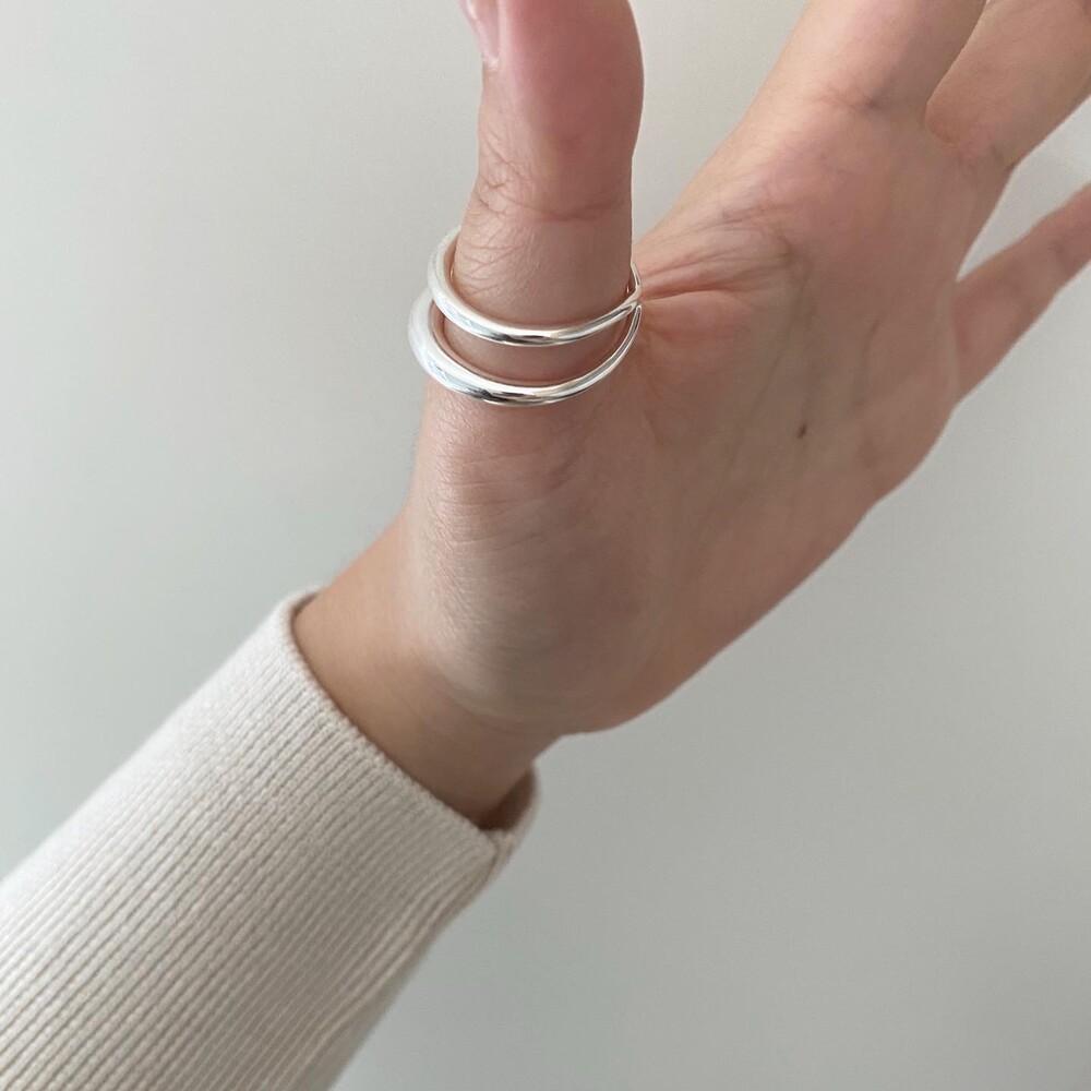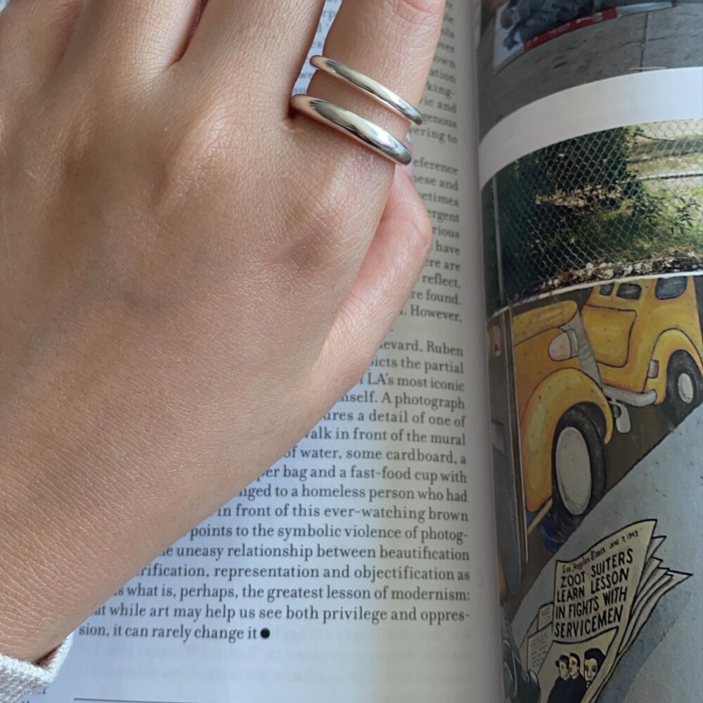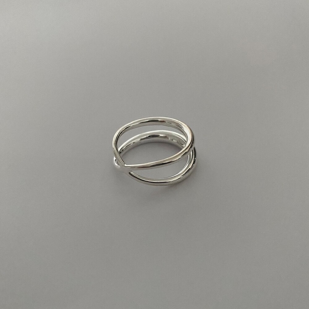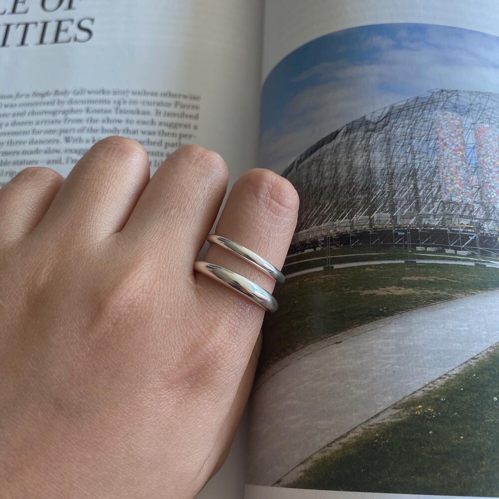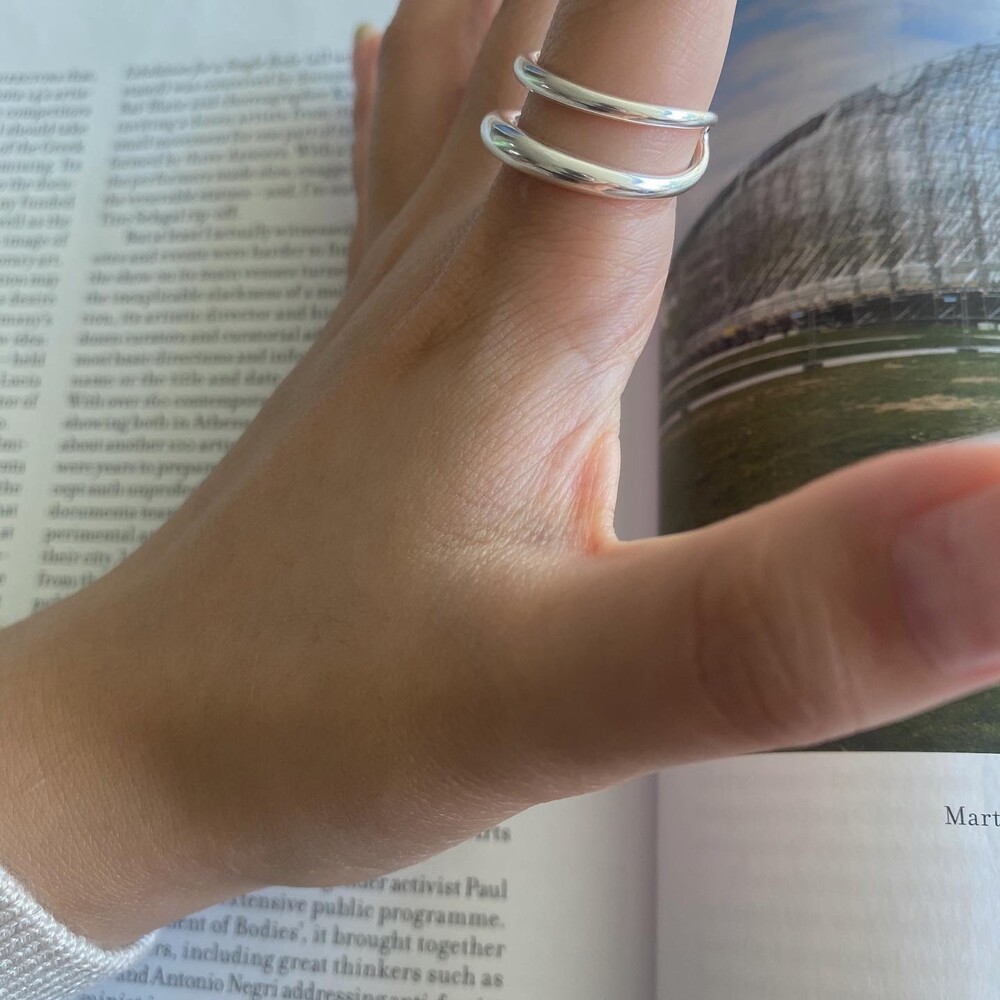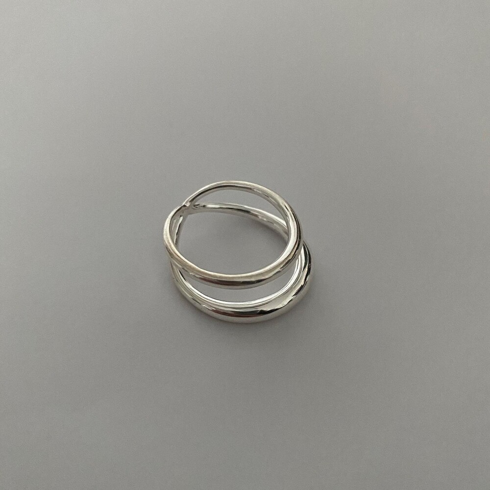 마치 반지 2개를 레이어드하여 착용한 듯한 착시를 주는 반지입니다.