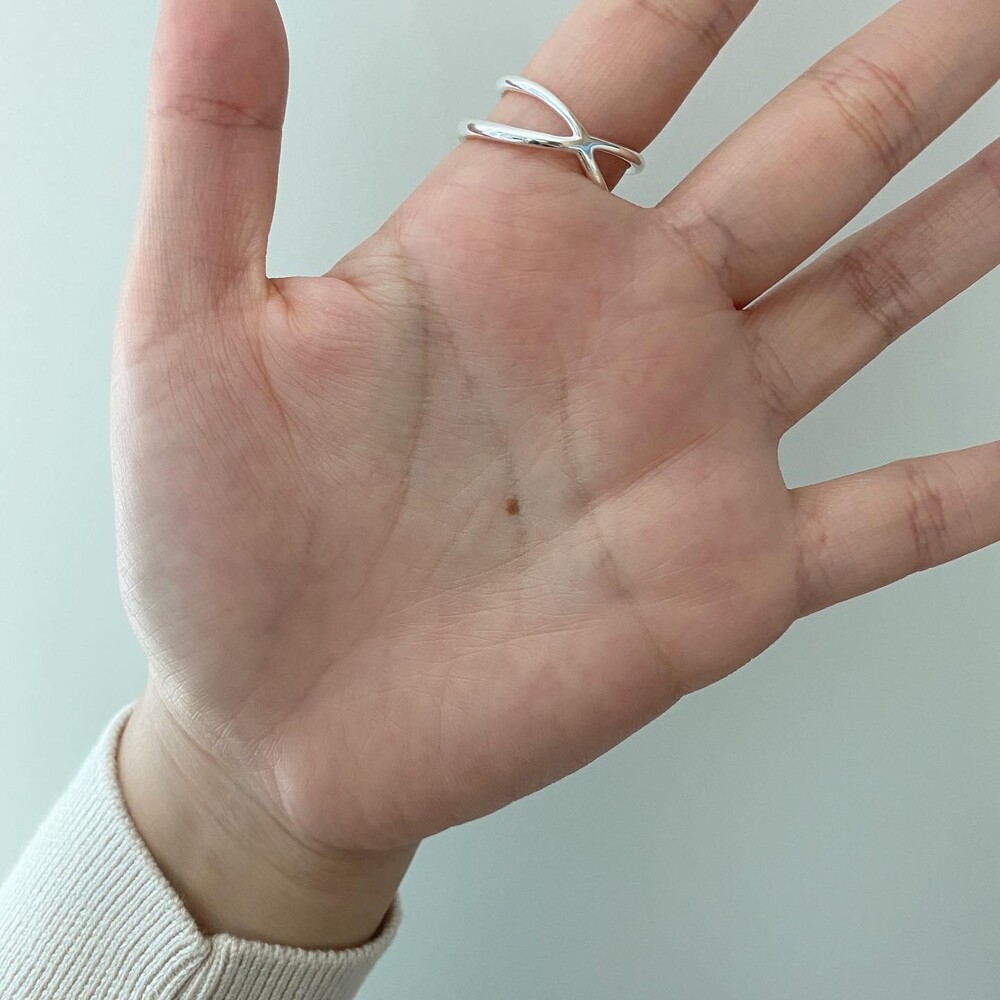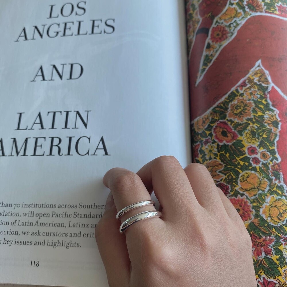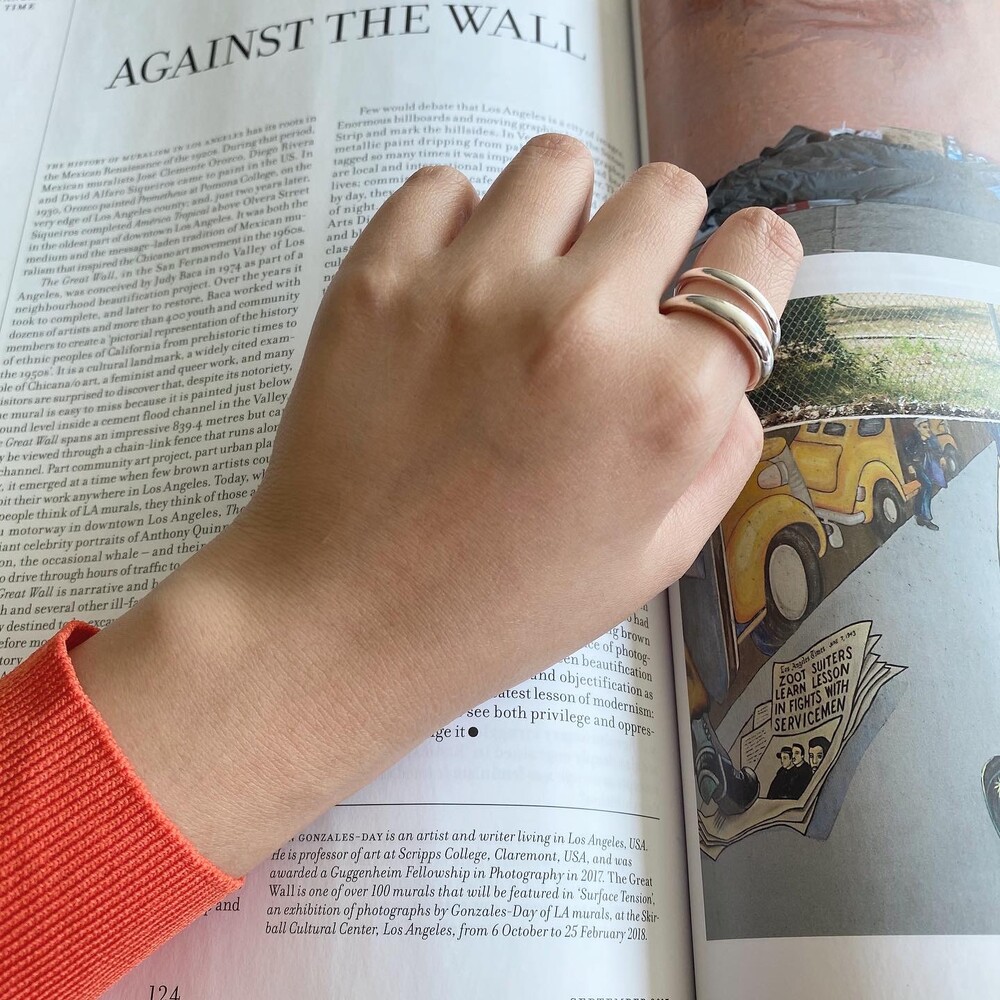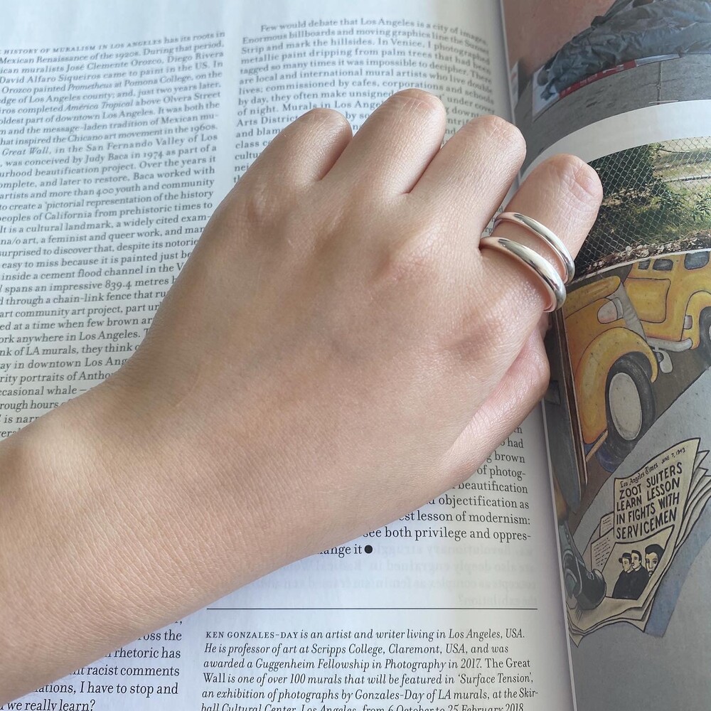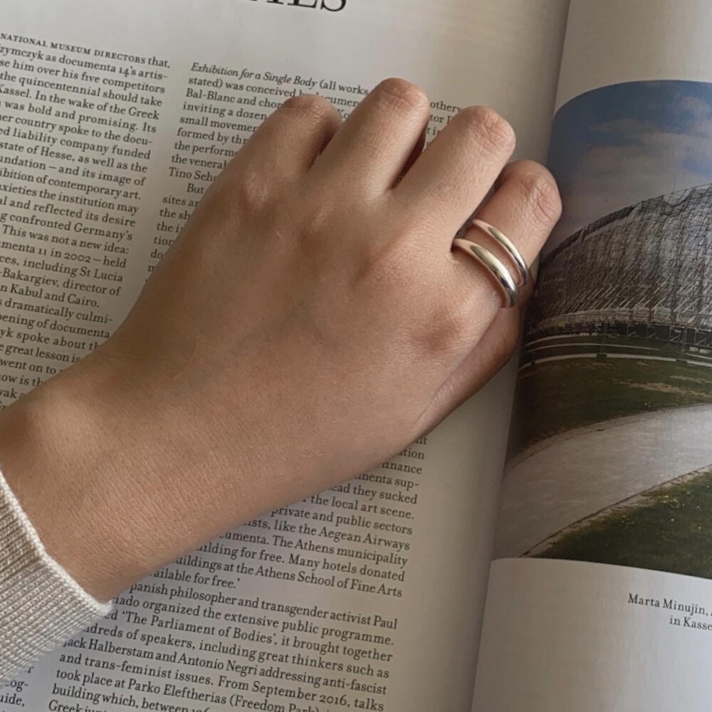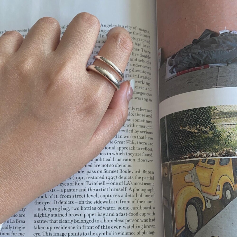 마치 반지 2개를 레이어드하여 착용한 듯한 착시를 주는 반지입니다.