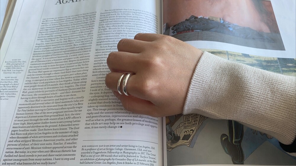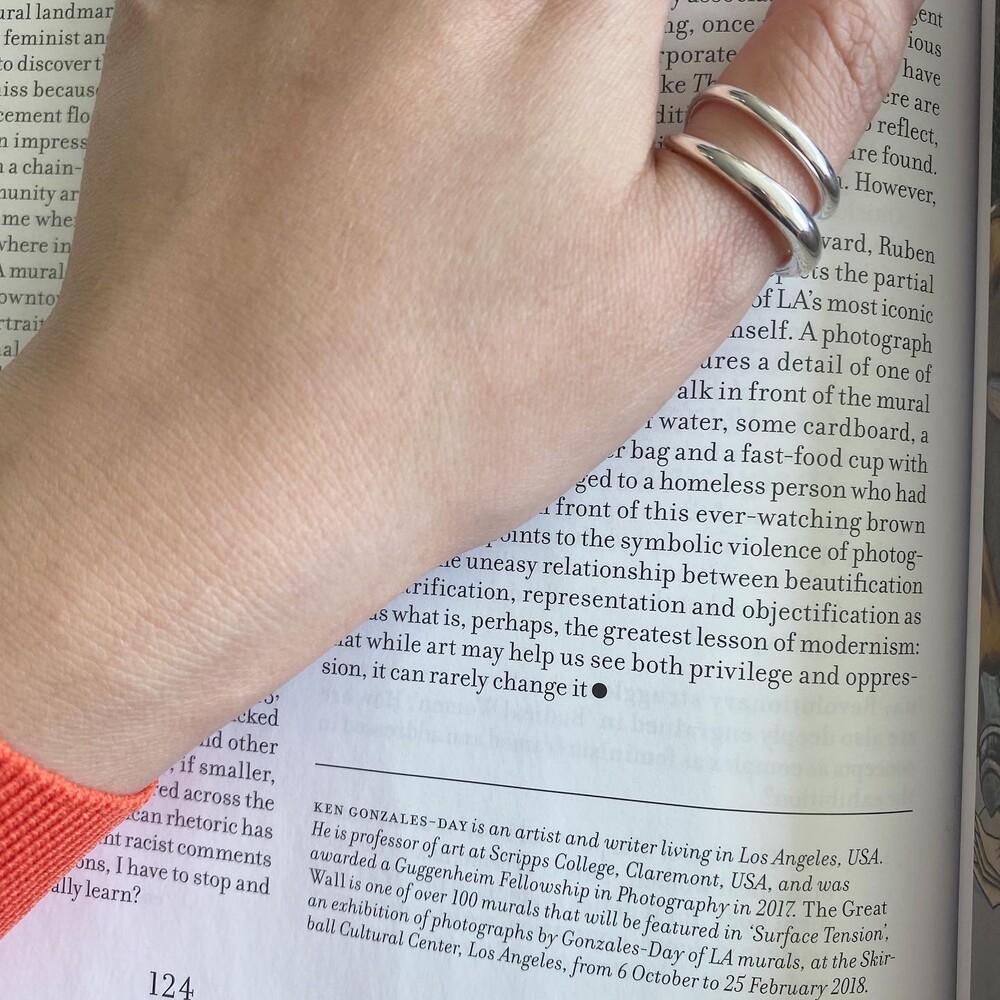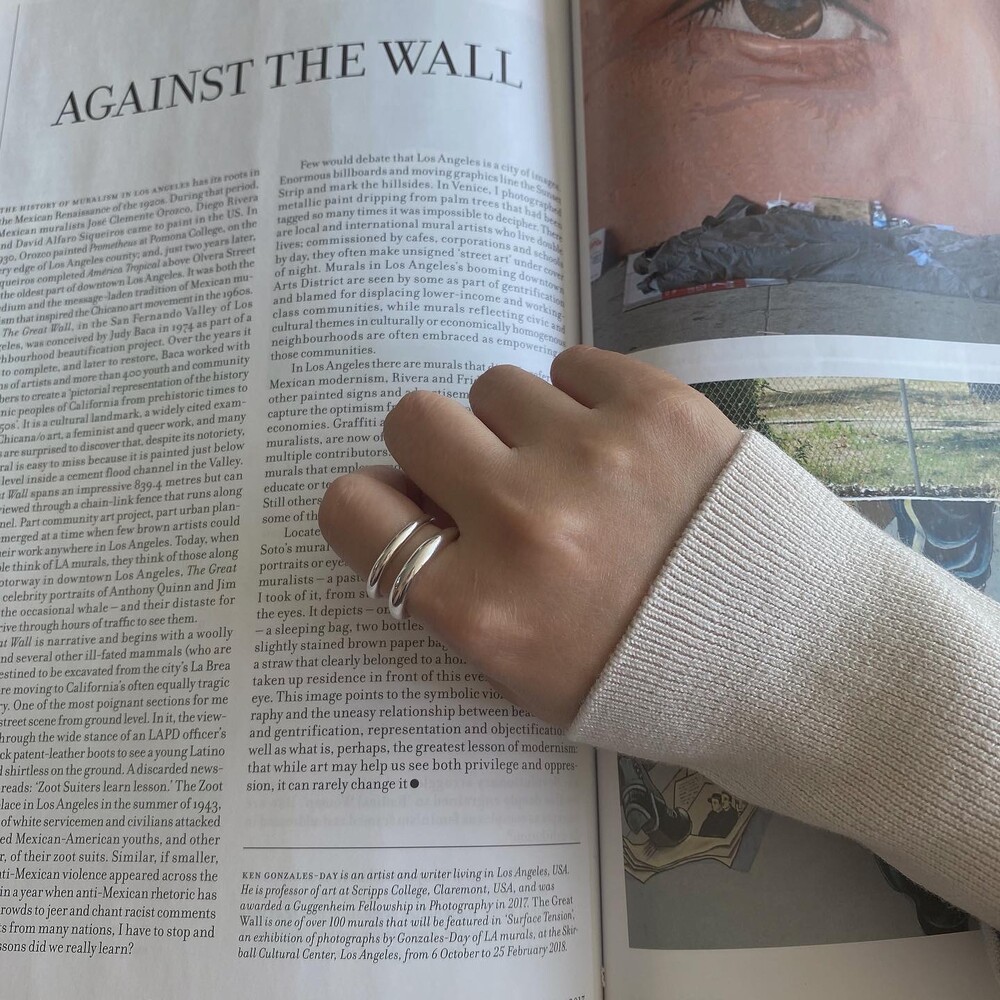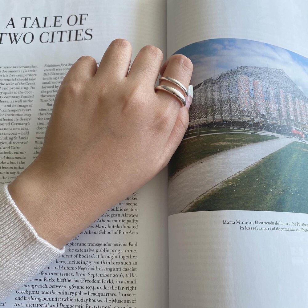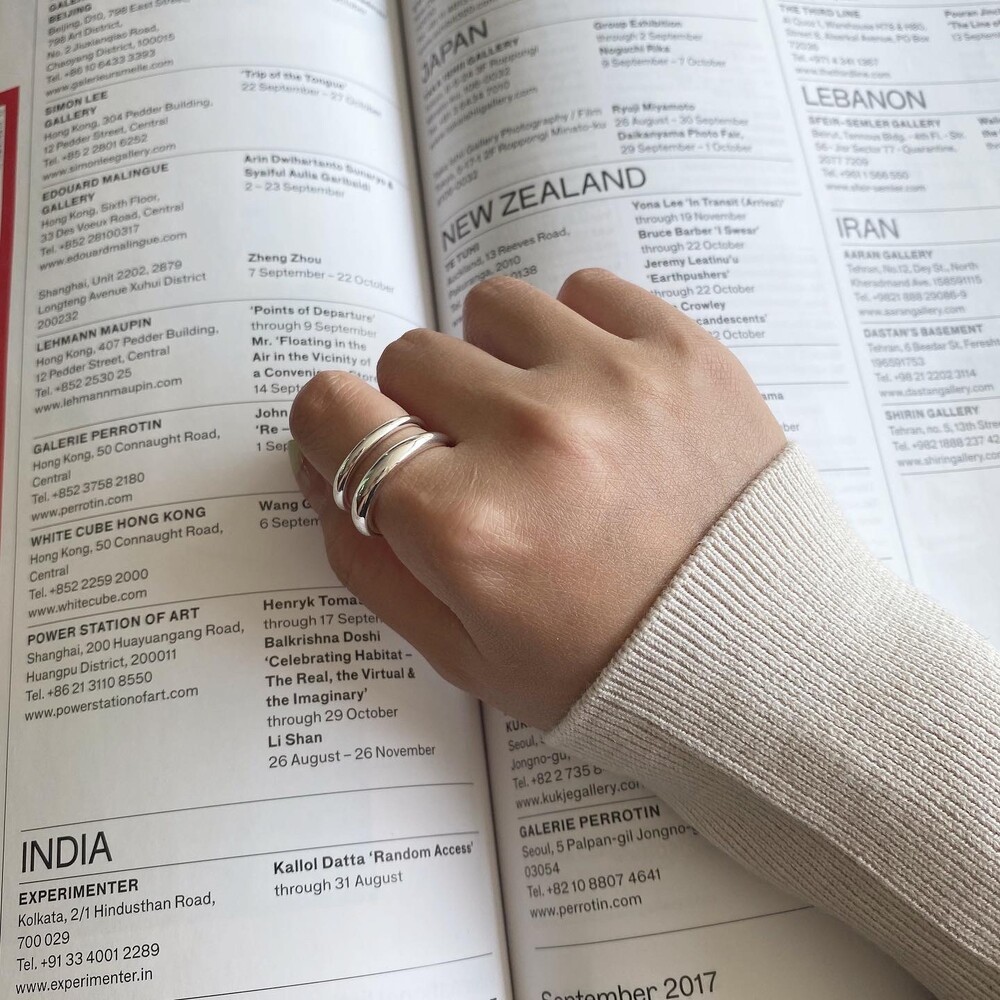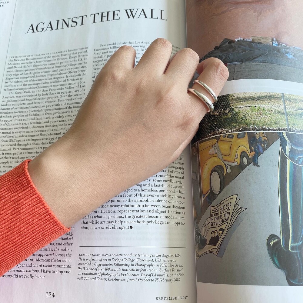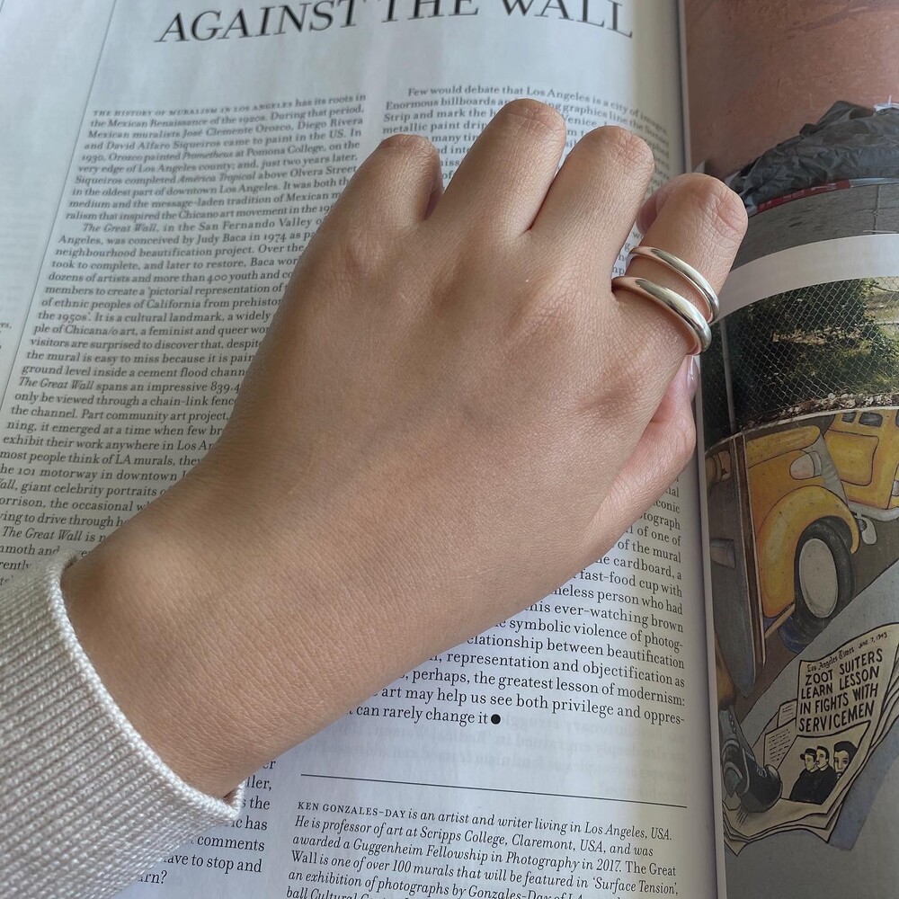 마치 반지 2개를 레이어드하여 착용한 듯한 착시를 주는 반지입니다.
