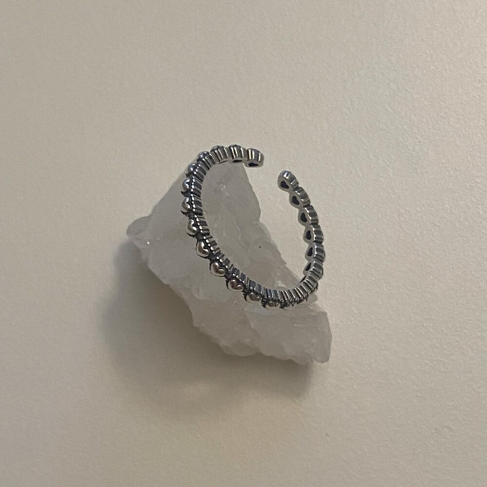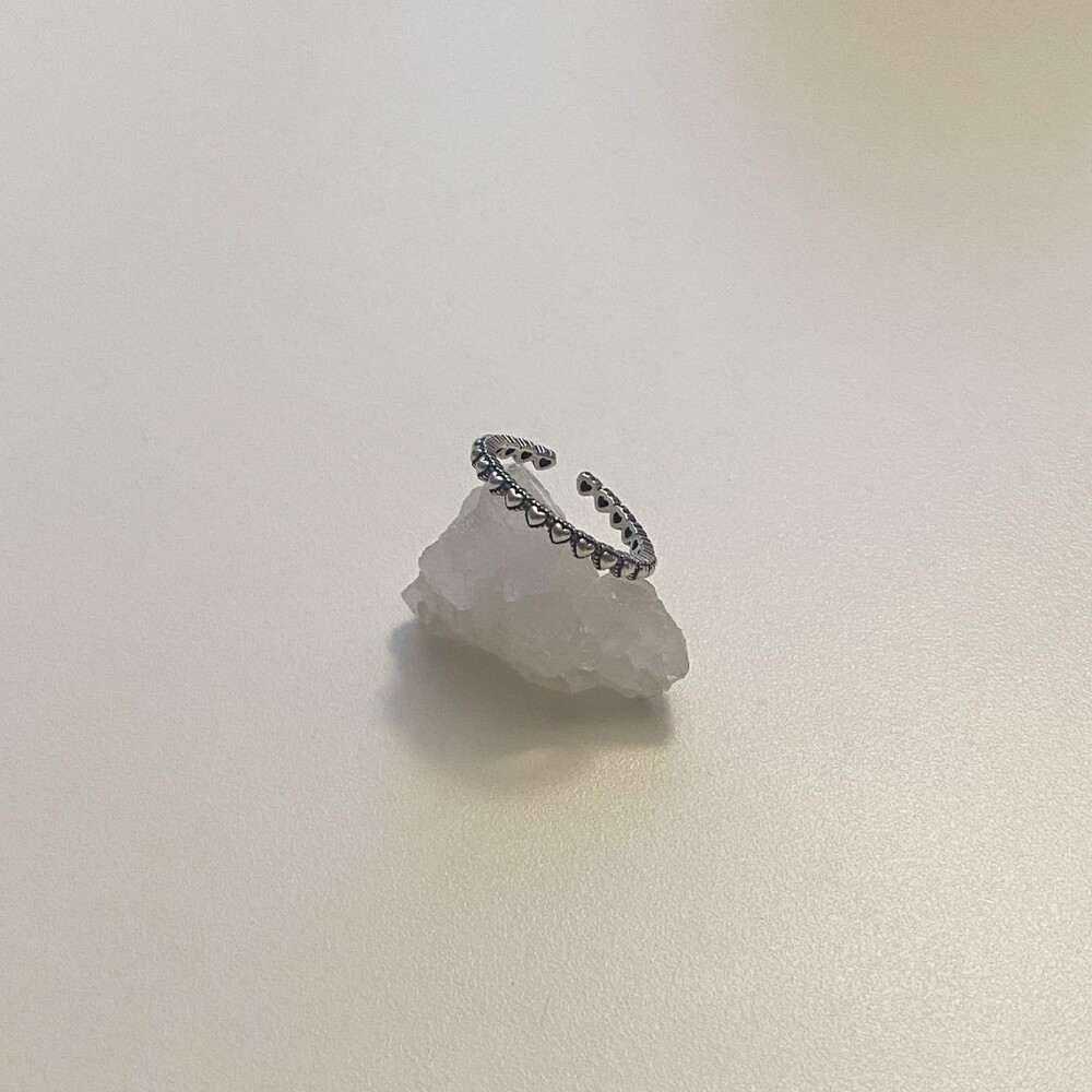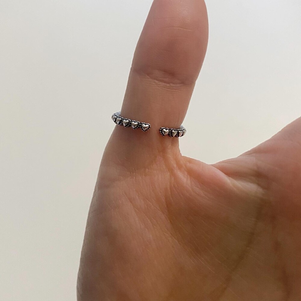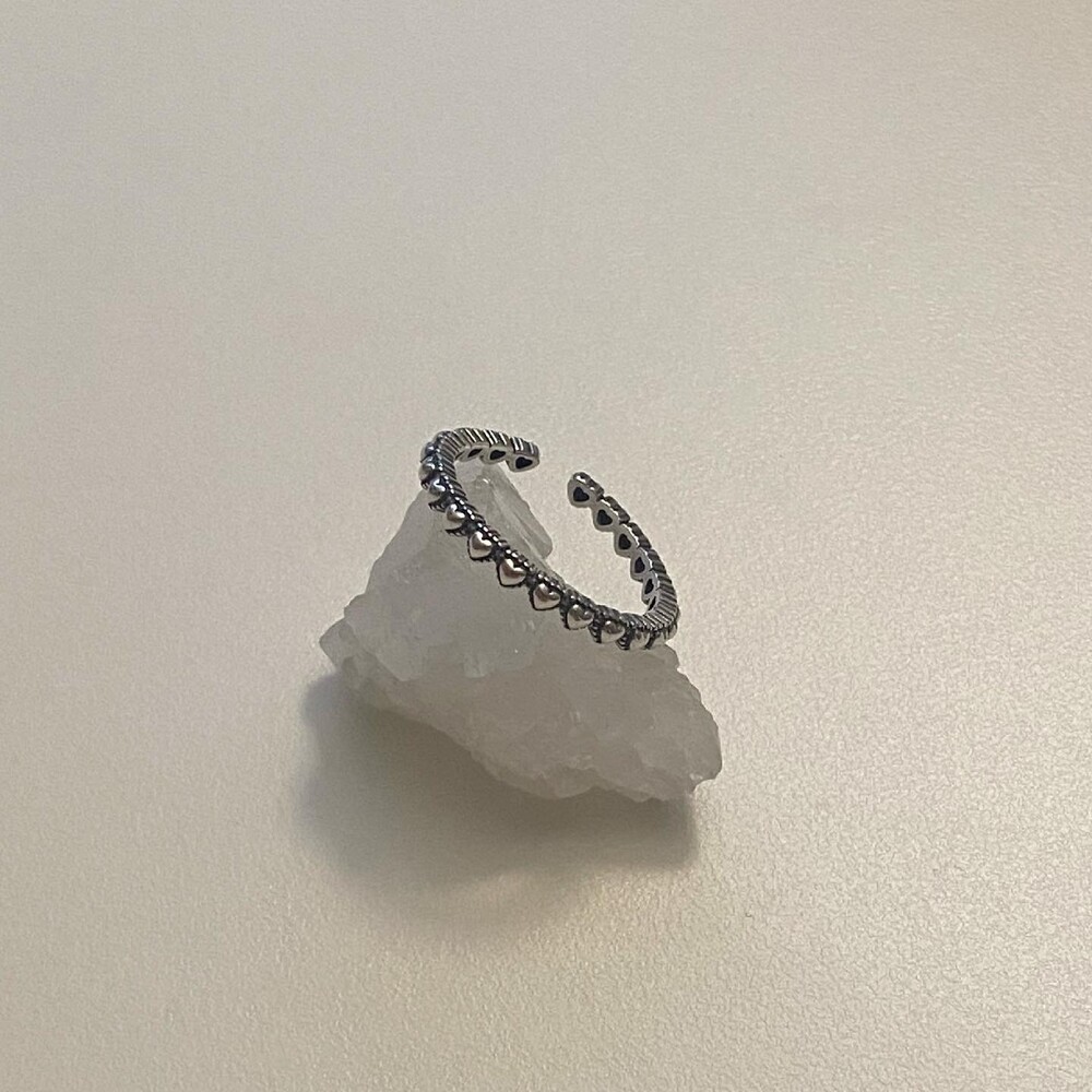 줄지어 연결된 미니하트가 포인트인 오픈링 형태의 반지입니다.