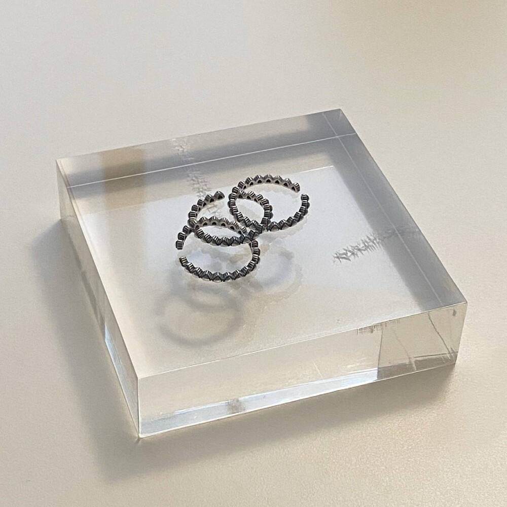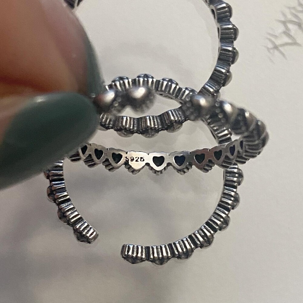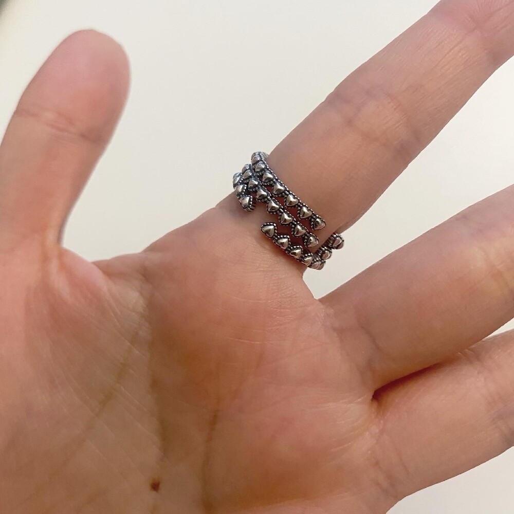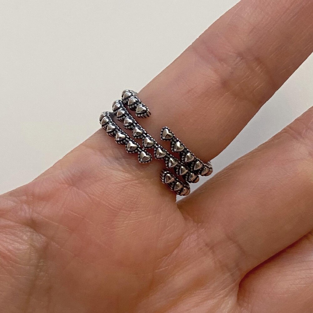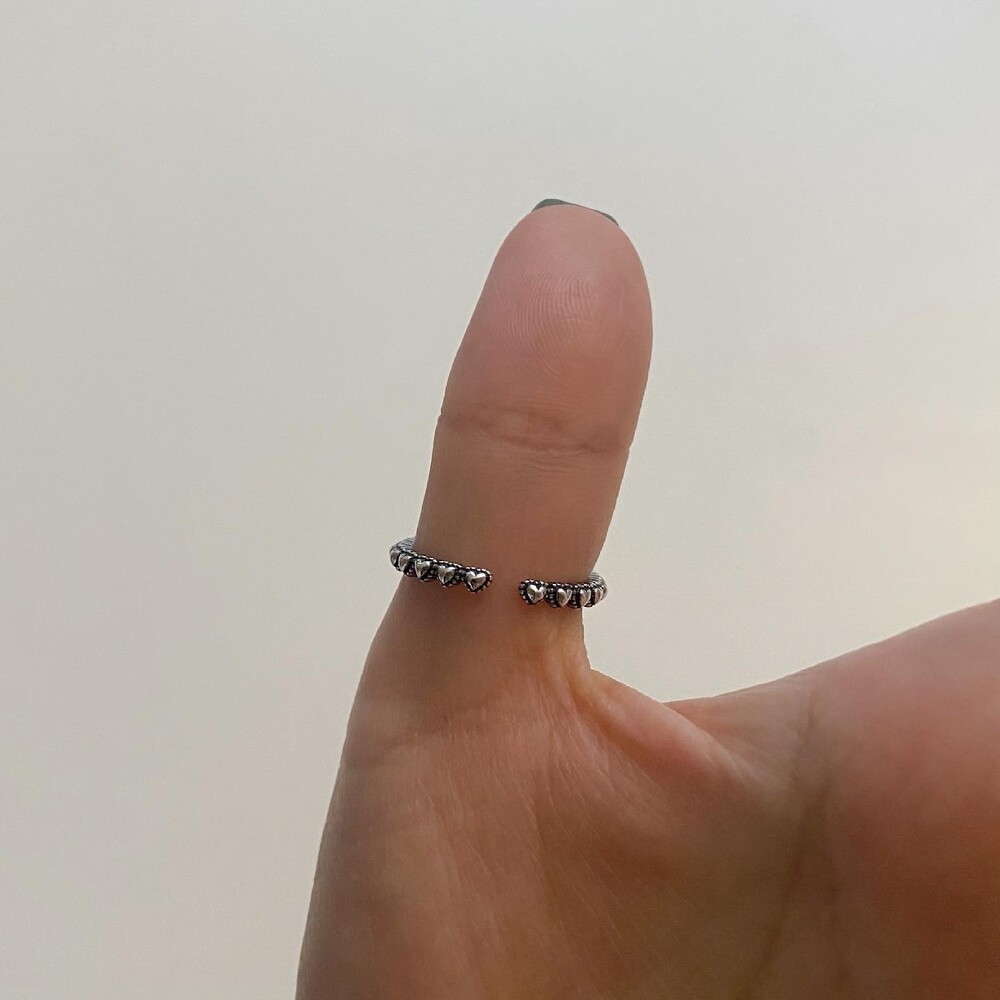 줄지어 연결된 미니하트가 포인트인 오픈링 형태의 반지입니다.
